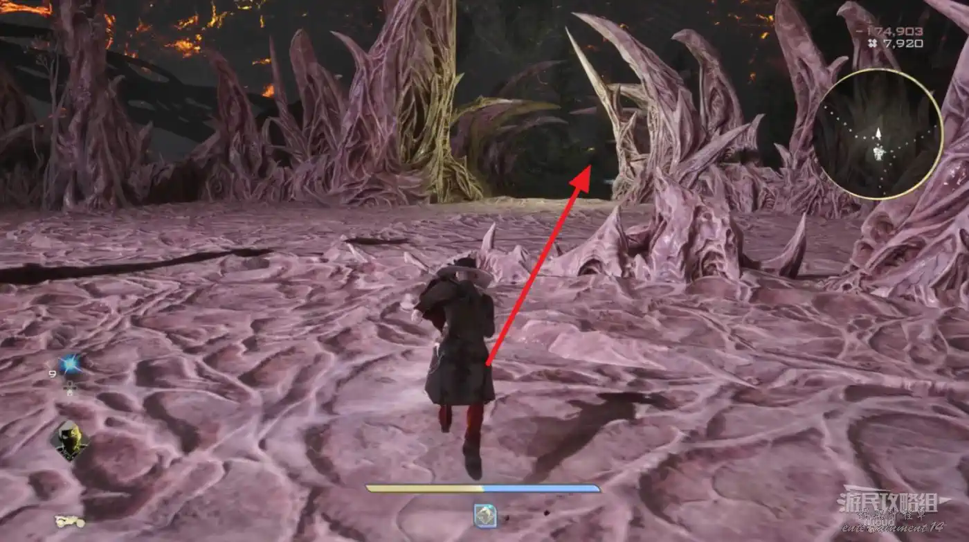 傳送到“酸之穀”右側的篝火“臺地下的小營地”,沿著紅色路線去擊敗“憤怒面具顯露者”。