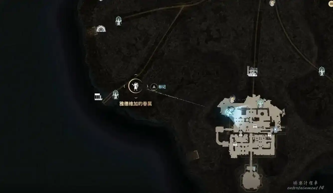 從剛剛獲取黃金果蜜的位置往西北走,來到下圖標記位置