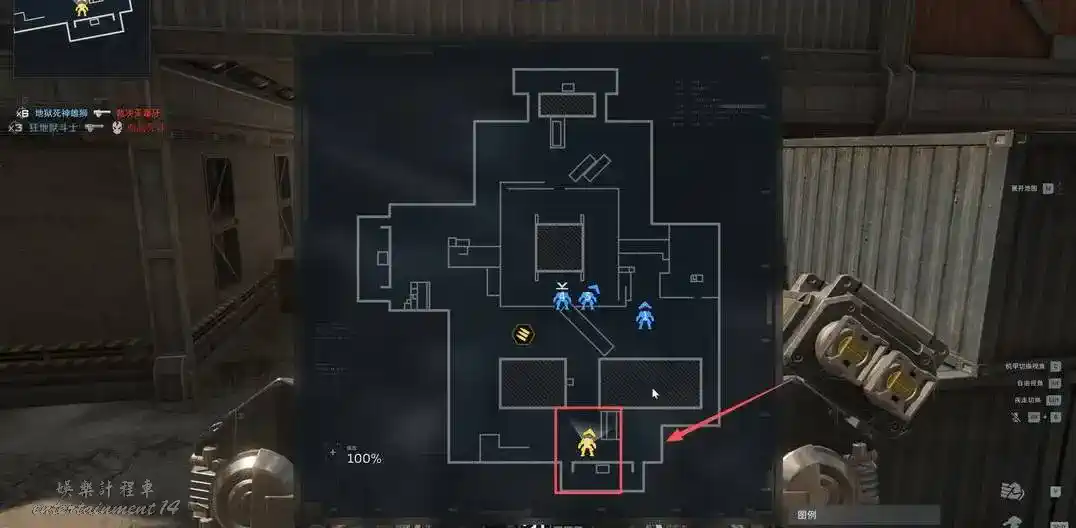 第二個點位就是最南側的復活點,這裡也會有很多敵人,並且門口比較大,站在門口也能用衝鋒槍消滅裡面的敵人。