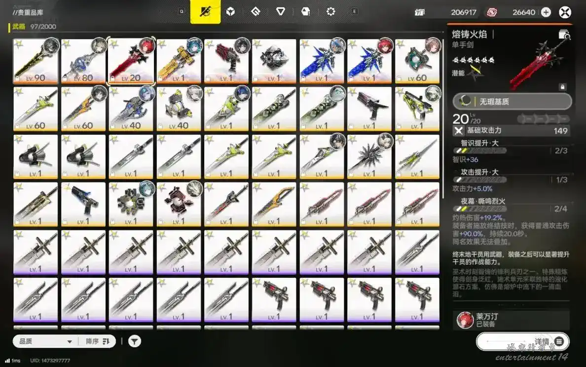 在選擇上圖詞條的情況下,我們可以同時為萊萬汀專武“熔鑄火焰”別禮專武“赫拉芬格”以及“熱熔切割器”和一些其他武器刷取畢業基質