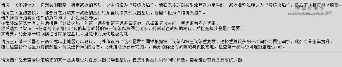 因此,在刷取之前你需要確定為哪一把武器刷取基質,如熔鑄火焰