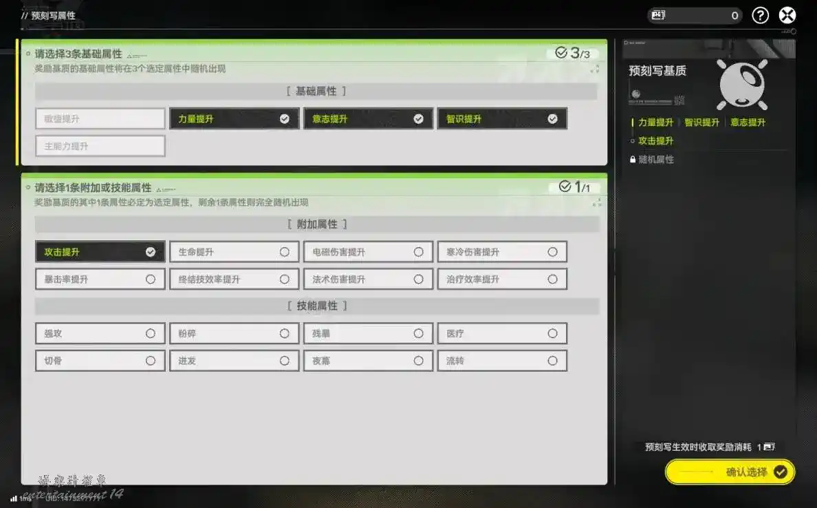 那麼我們需要的基質詞條同樣為:智識提升,攻擊提升,夜幕。