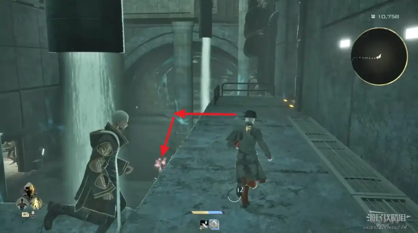 進入副本沿路背刺兩個敵人,走到一個開闊區域從左邊出口出來。