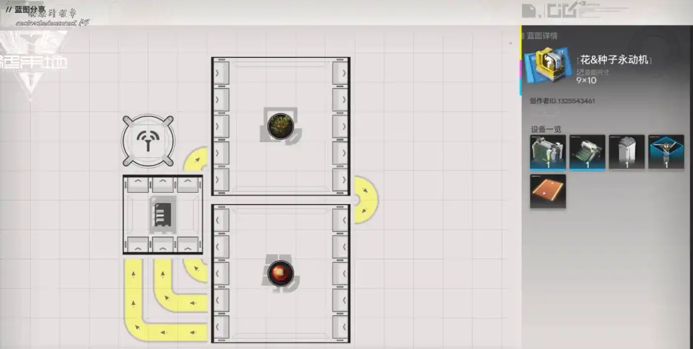 核心組件:採種機 ×1 + 種植機 ×1 + 供電樁 ×1 + 傳送帶若干
