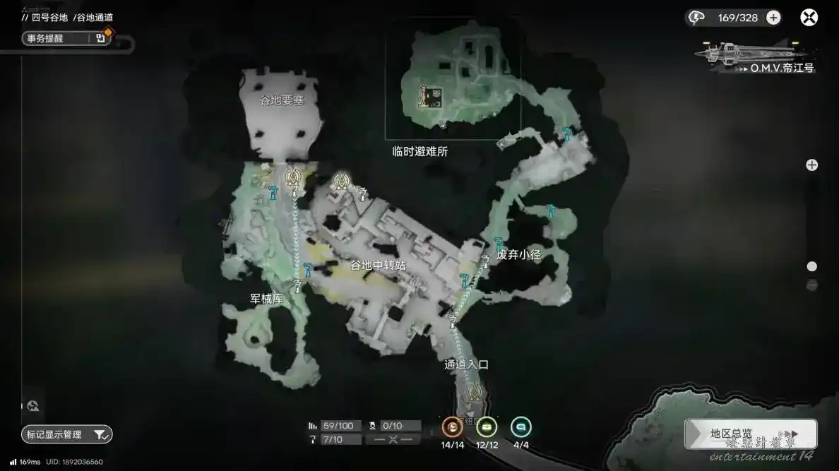 谷地通道必要5個滑索,選用2個滑索,共7滑索。