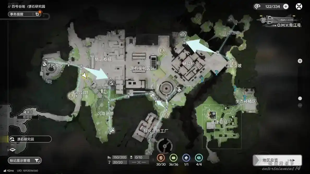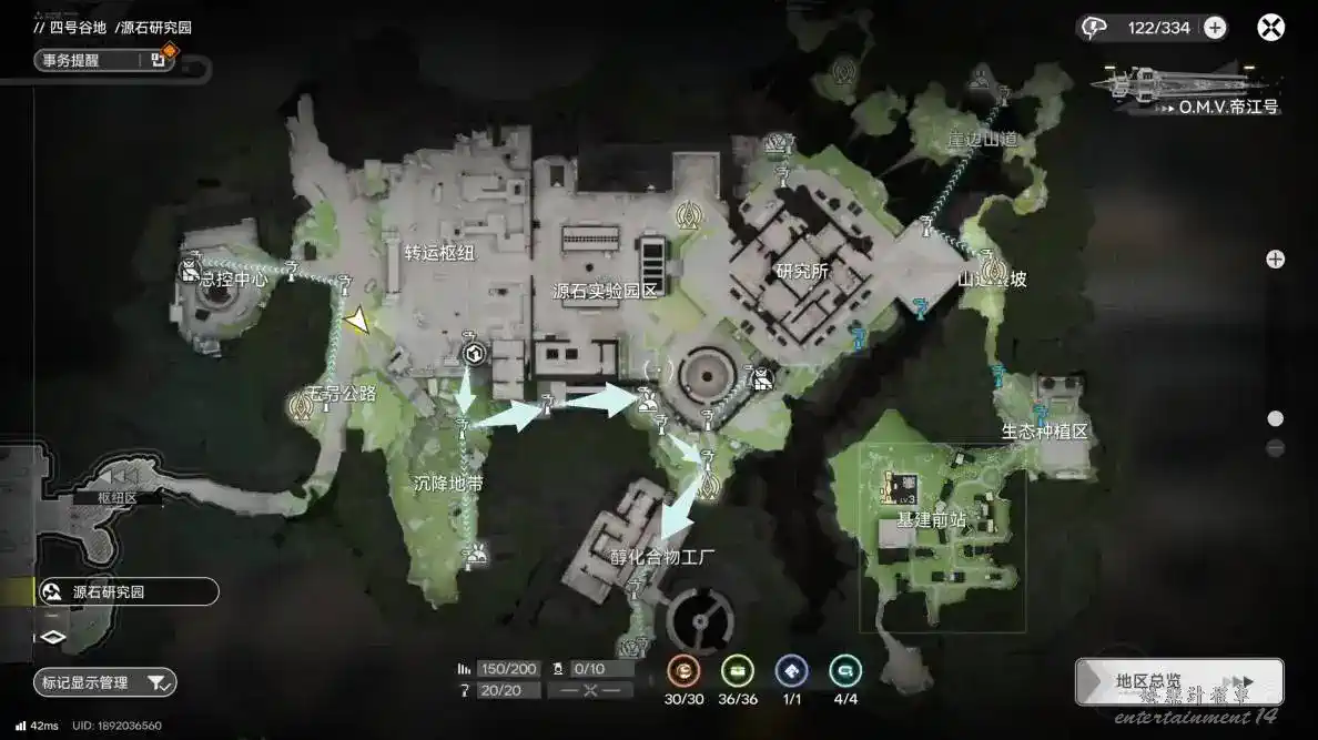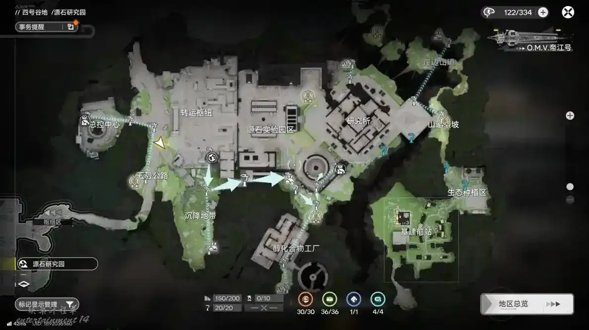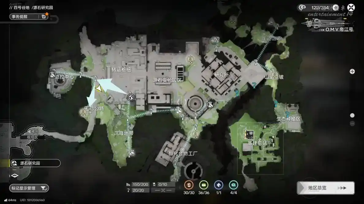地圖下面以醇化合物工廠門口處為起點,共10個滑索,涵蓋2個稀有採集物,1個稀有礦物,1個資源回收站。