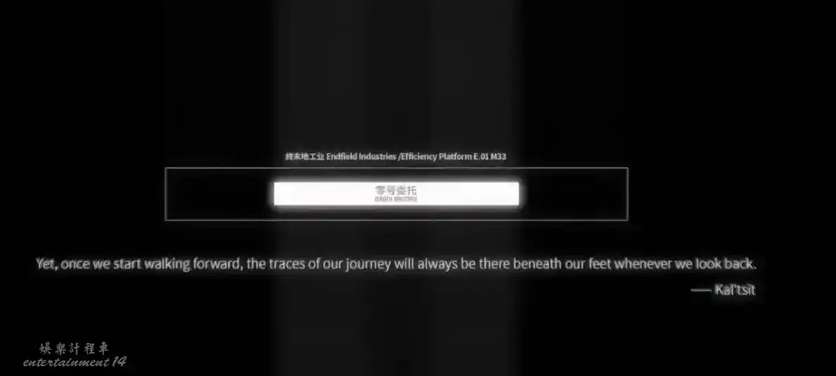 序章動畫最後的載入頁面中,有一串小英文,而這句話正是在《明日方舟》主線中凱爾希所說的“然而,一旦我們向前走去,在我們回望時,我們腳下就是旅途”