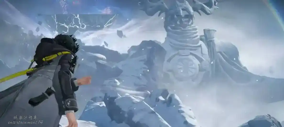 當我們繼續前進時,會發現路面斷了,不過這裡正好有個雕像給我們搭路,而這個雕像正是《明日方舟》中的愛國者。