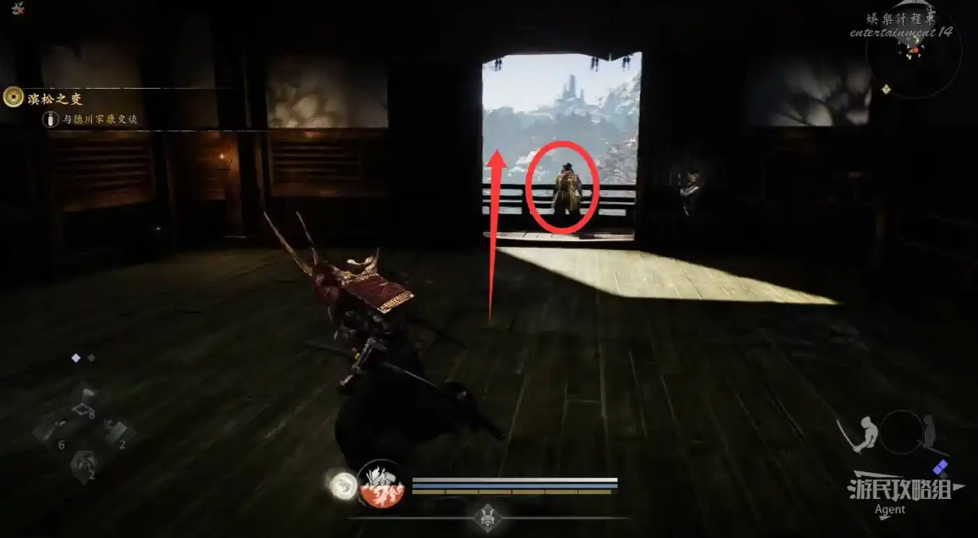 回濱松城天守樓頂找德川家康,和服部半藏對話後,到樓下追上並解決肉瘤怪。