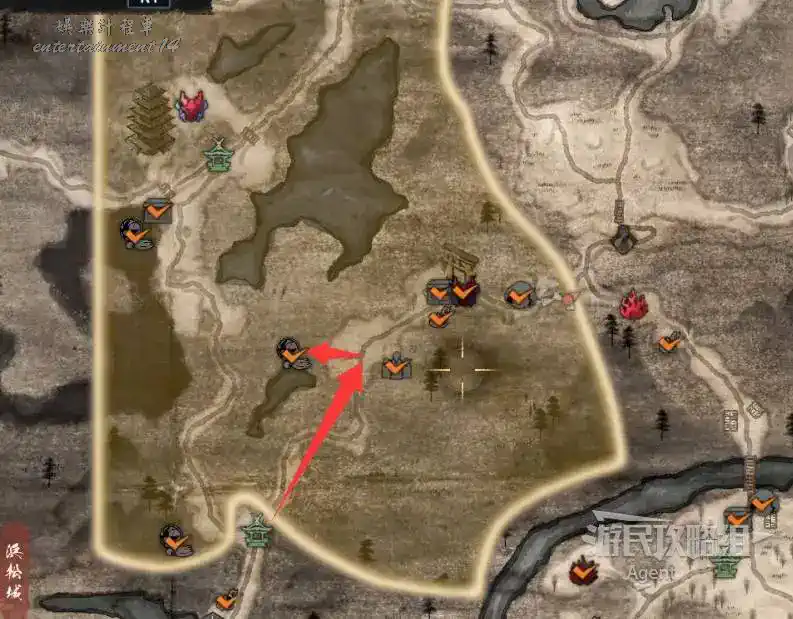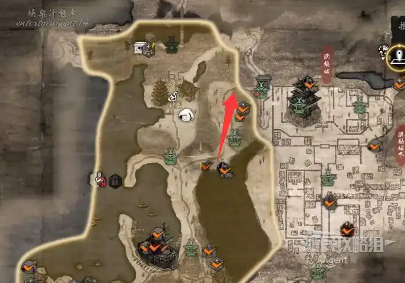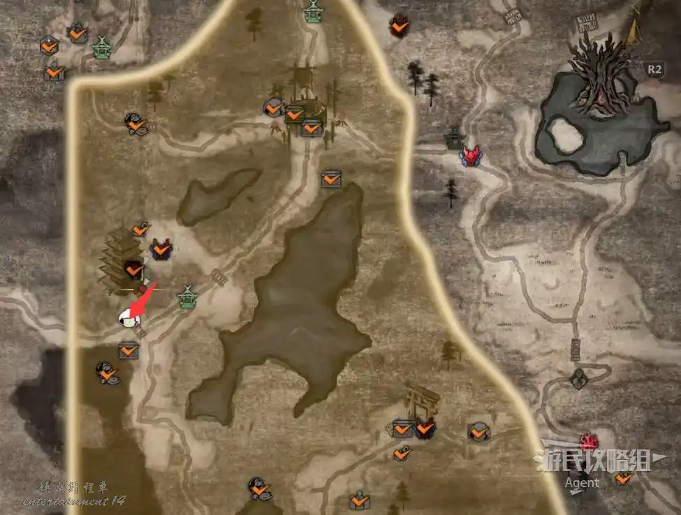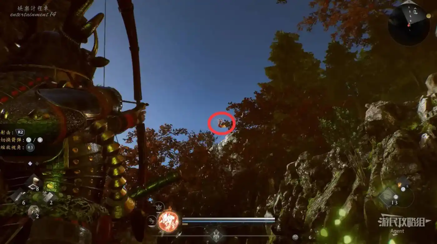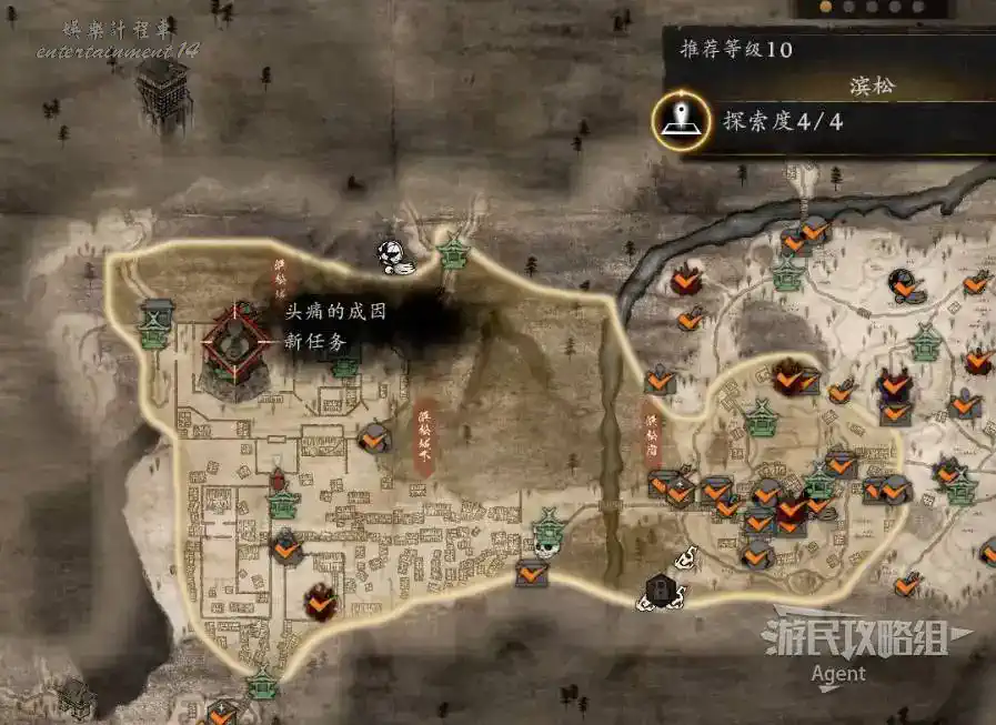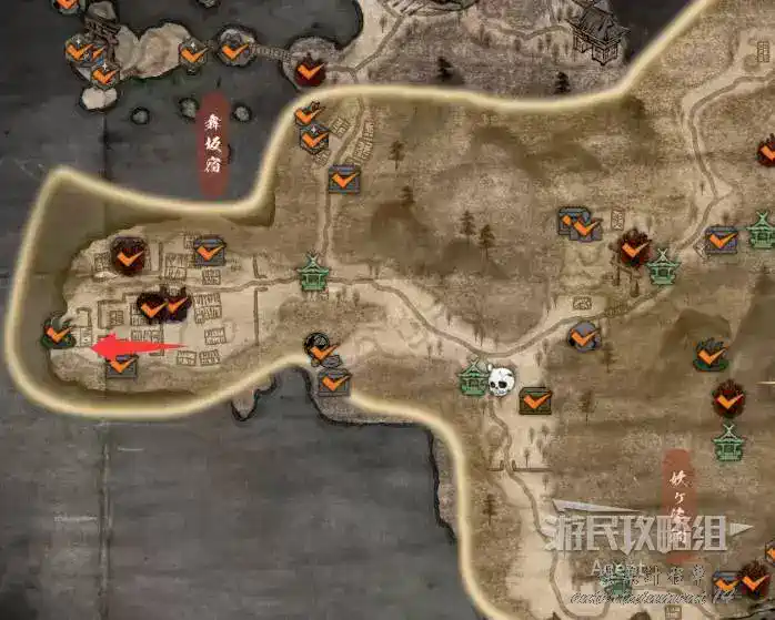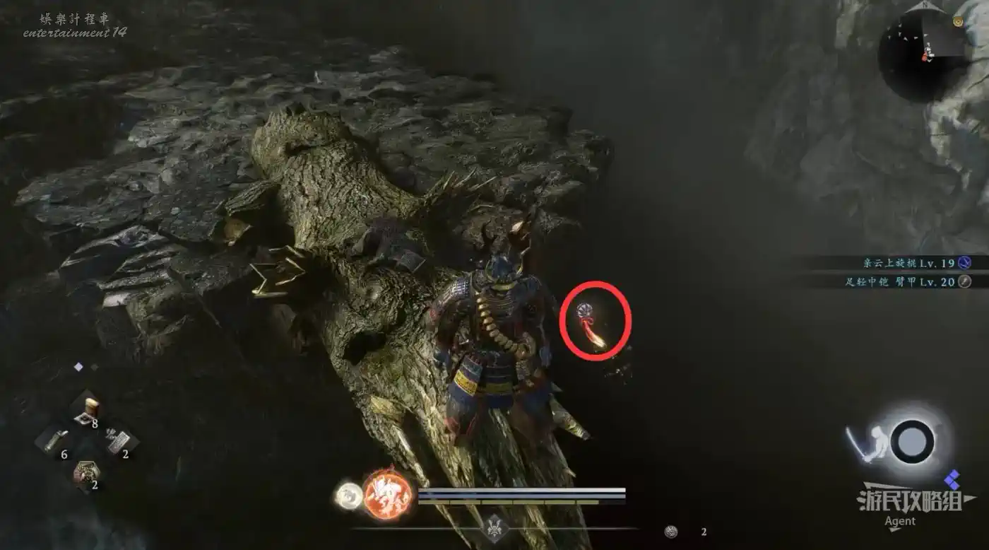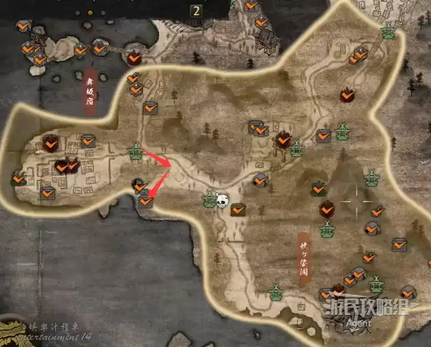到最北面啟動大紅葉三叉路神社,在下圖圈出位置遇到神秘忍者,接到奇譚任務“生存於暗影者”。
