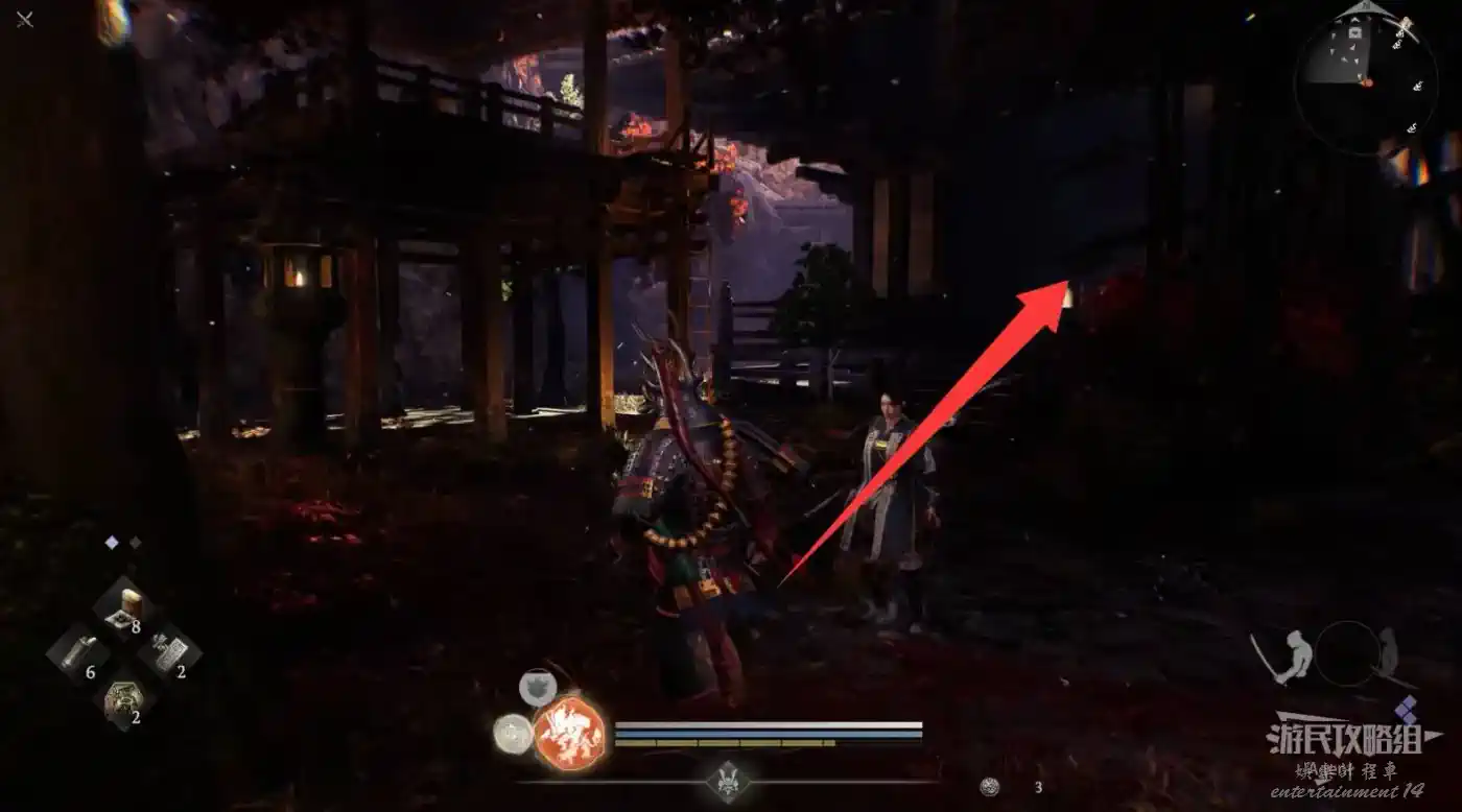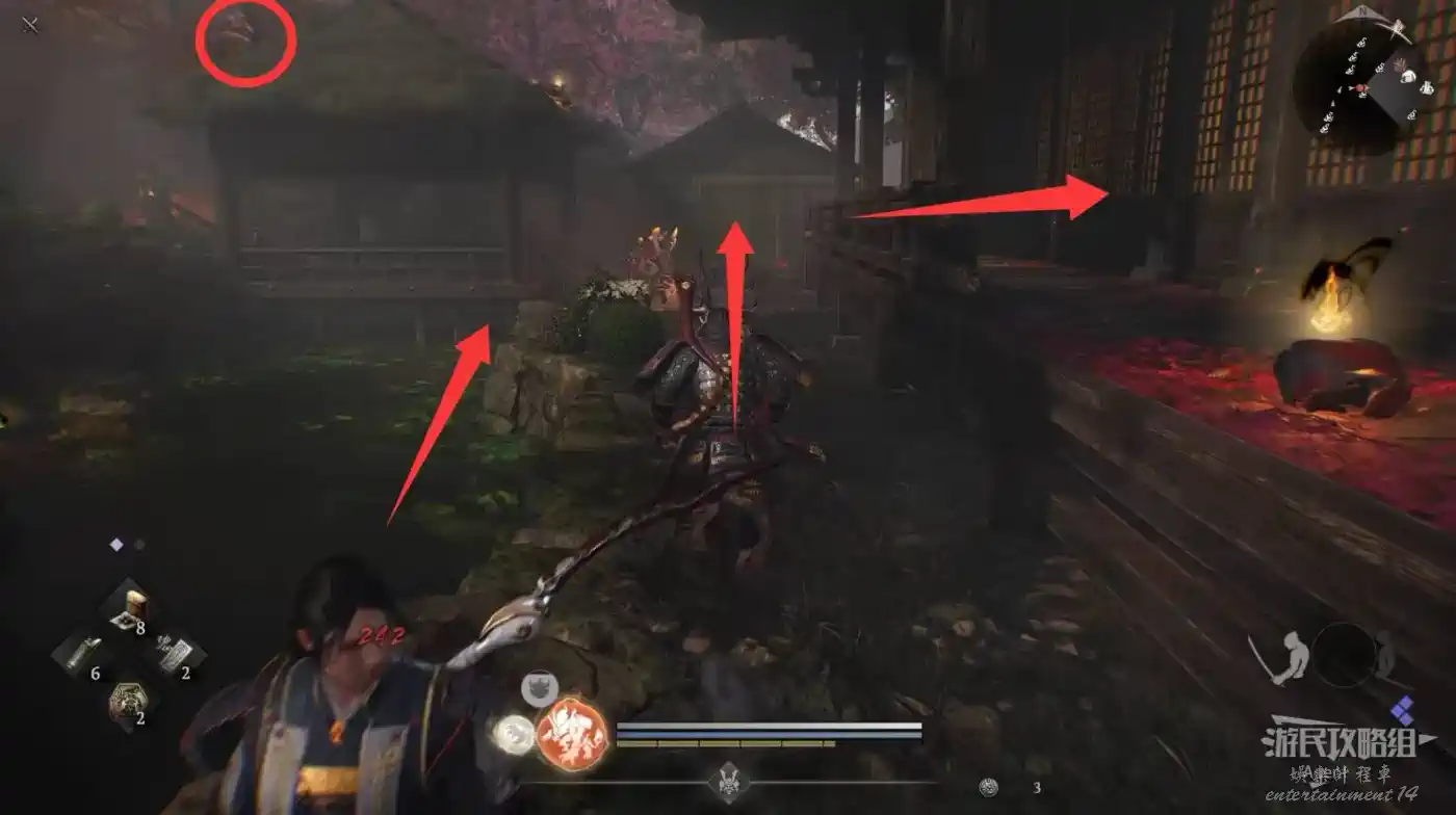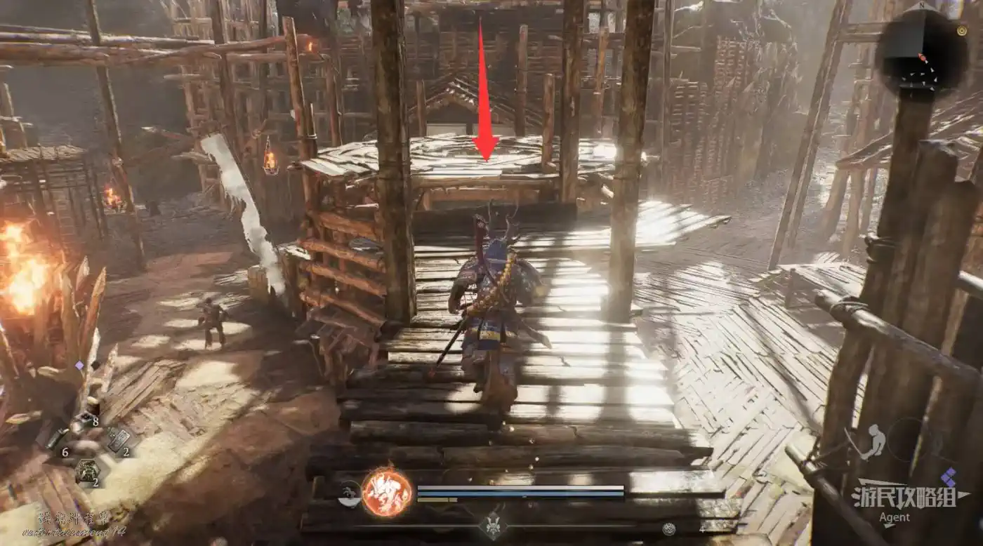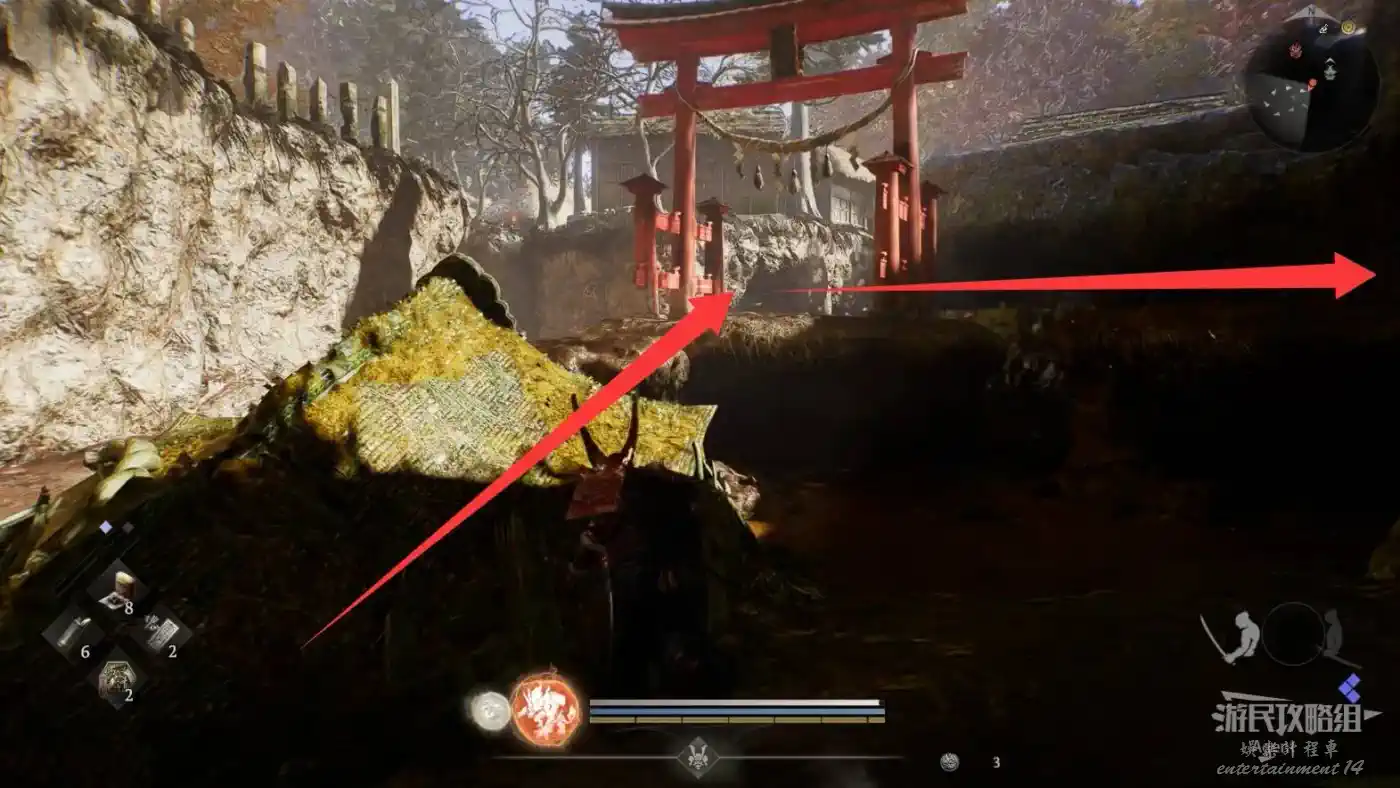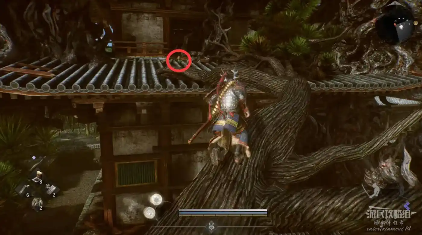 瞭望塔上有口鐘可以敲,然後到最北面的祠堂擊敗兩面宿儺,完成井伊直虎的任務。