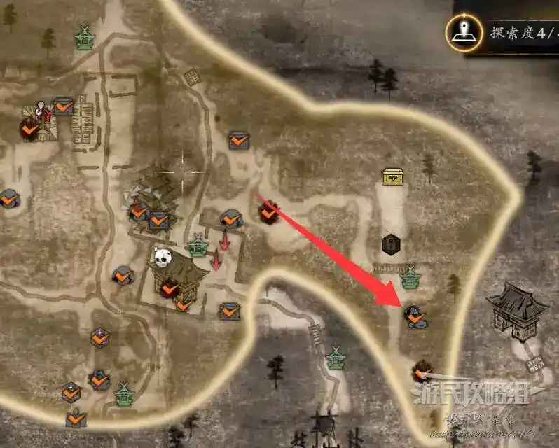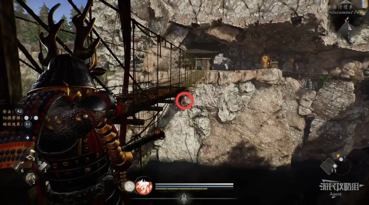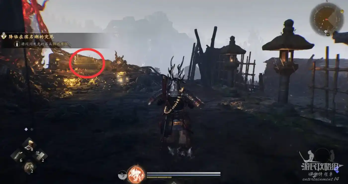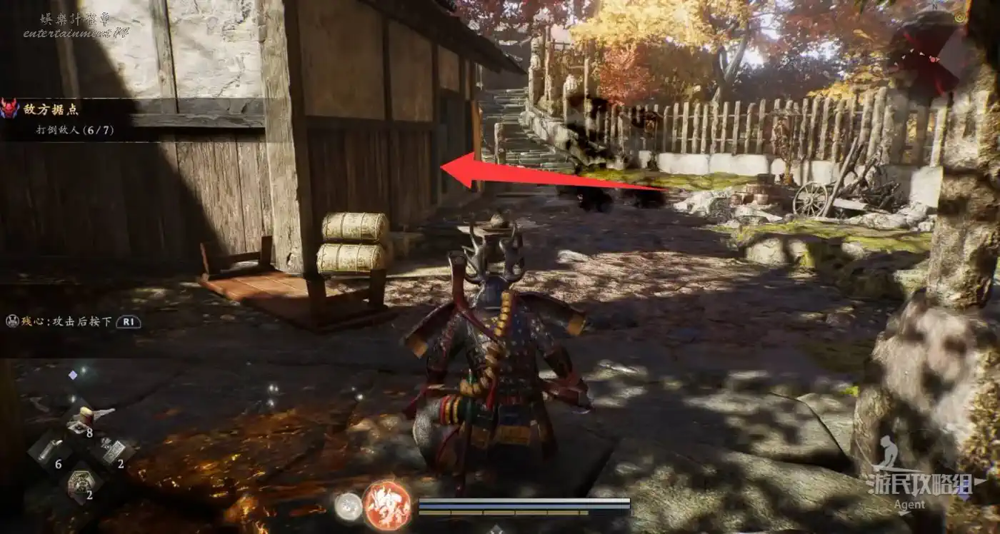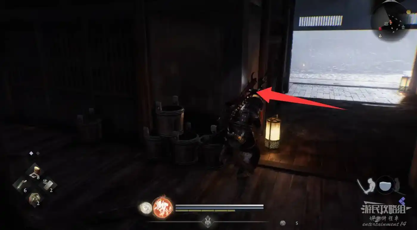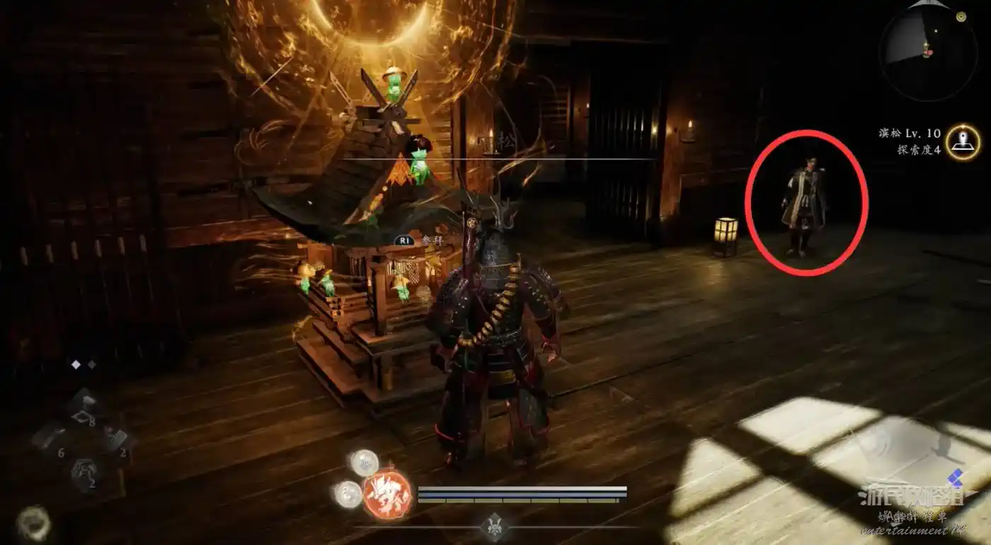 瞭望塔上有口鐘可以敲,然後到最北面的祠堂擊敗兩面宿儺,完成井伊直虎的任務。