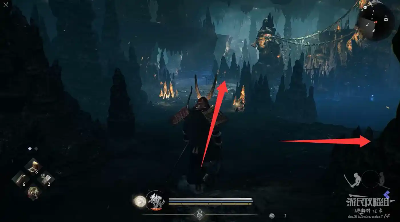 從濱松丘陵的另一條路,來到井伊谷的廢寺墓地,打穿房子裡的小地獄拿到“三重塔鑰匙”和精華。