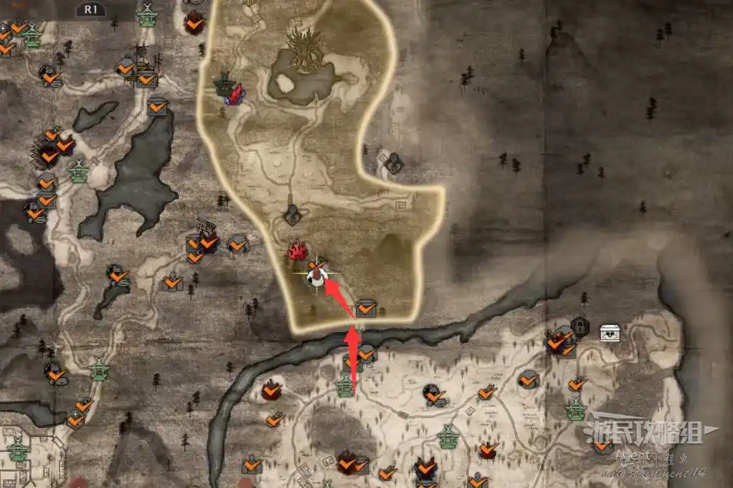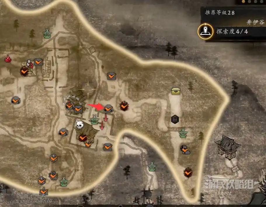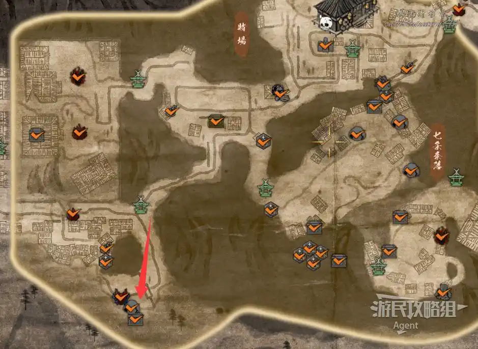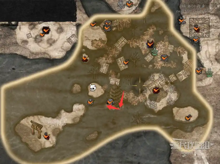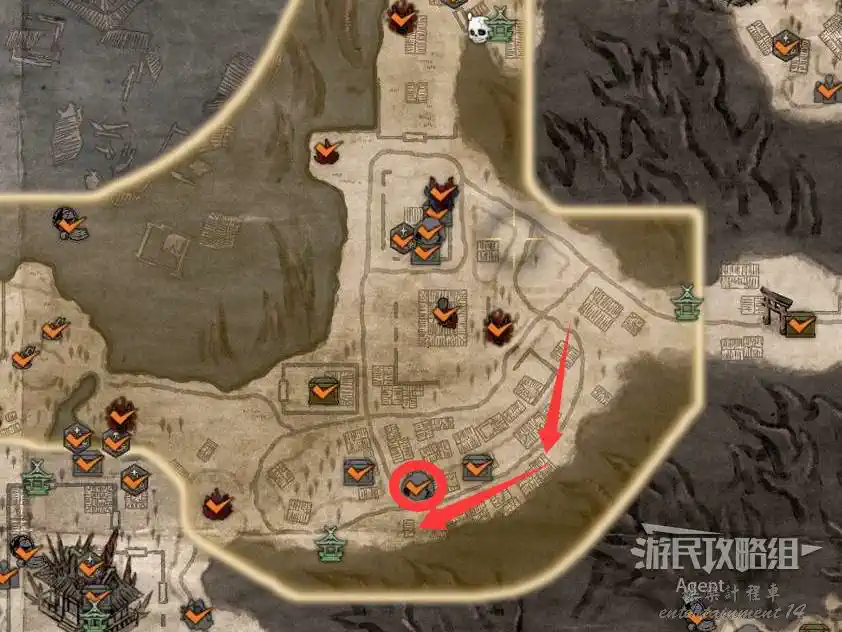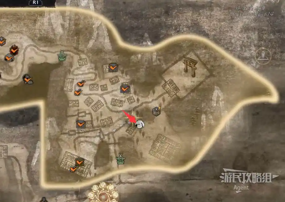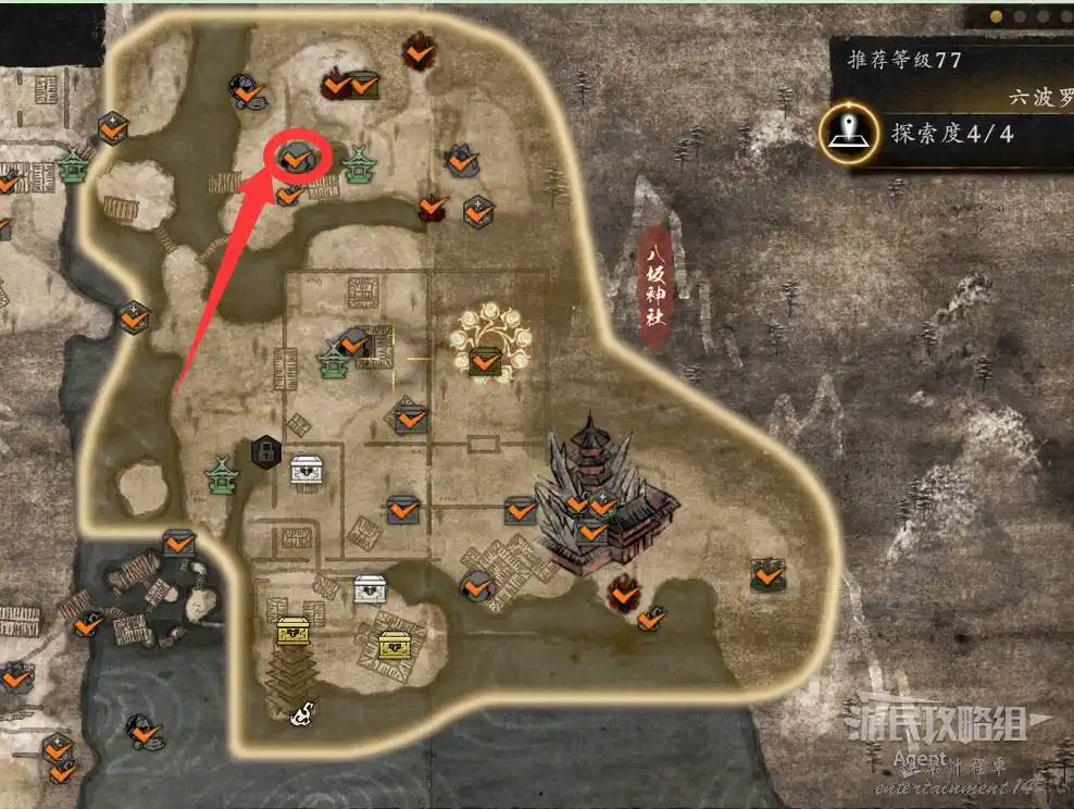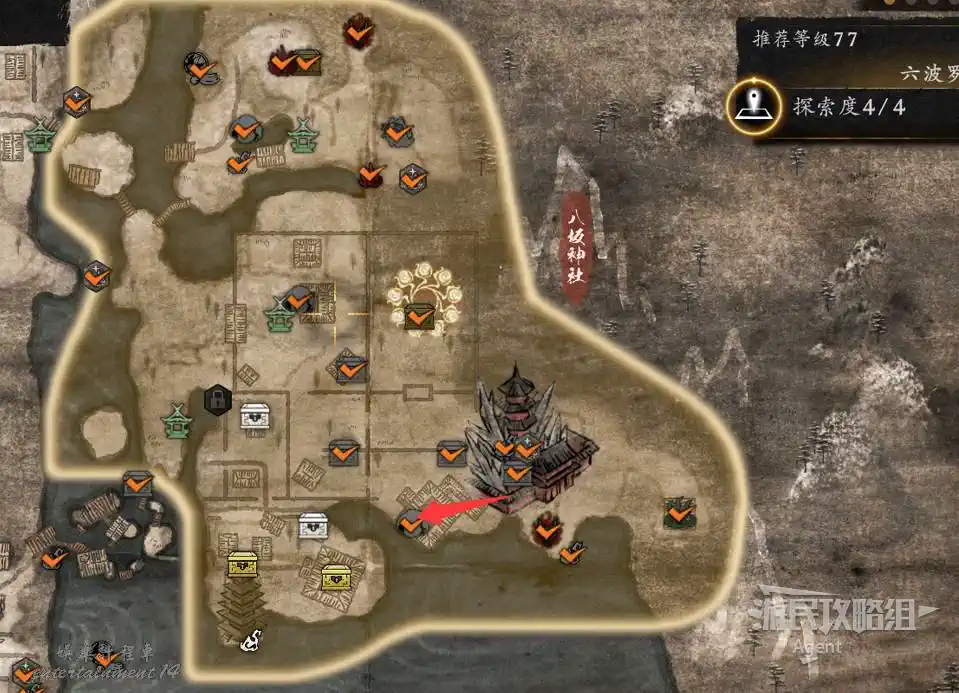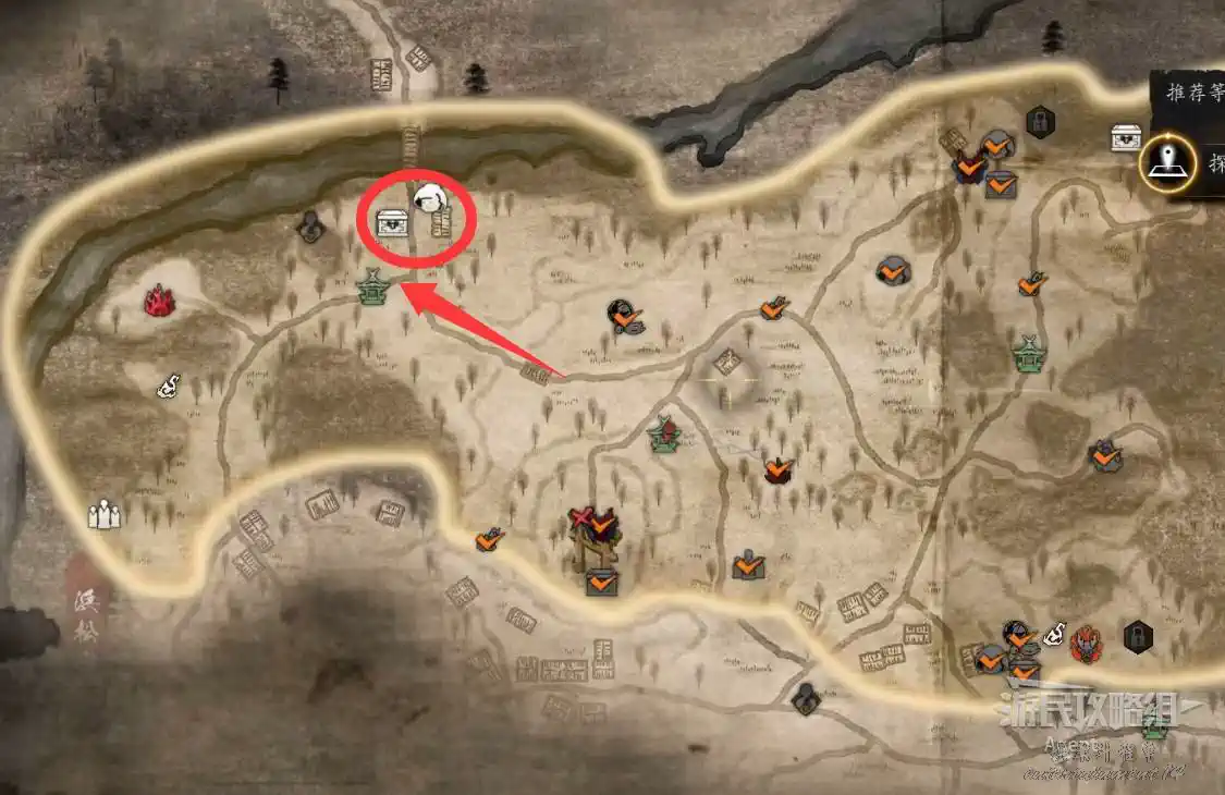 1、瞭望之丘神社南面有個村子,進村擊敗精英怪得到“焦黑的鑰匙”。
