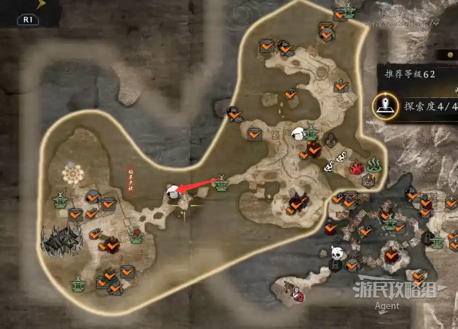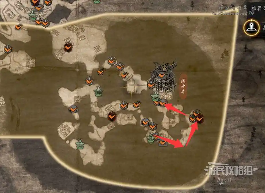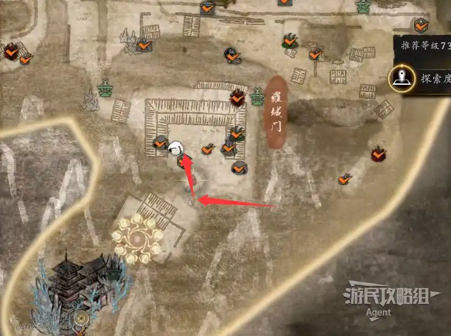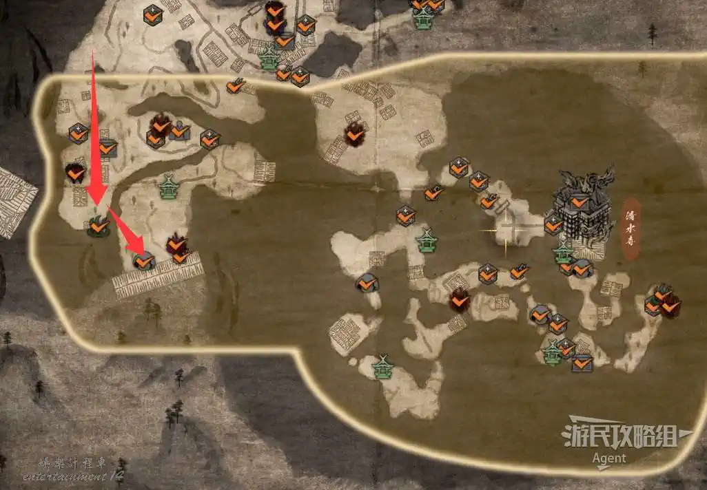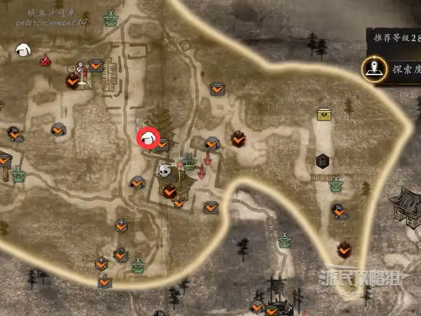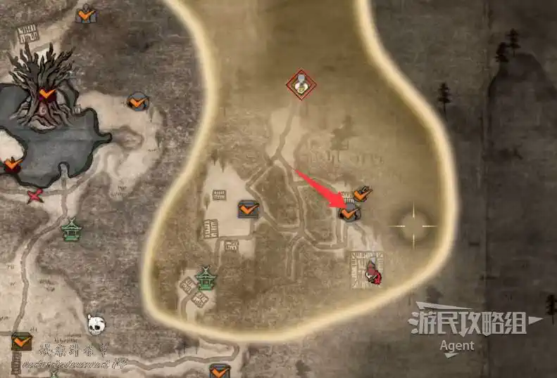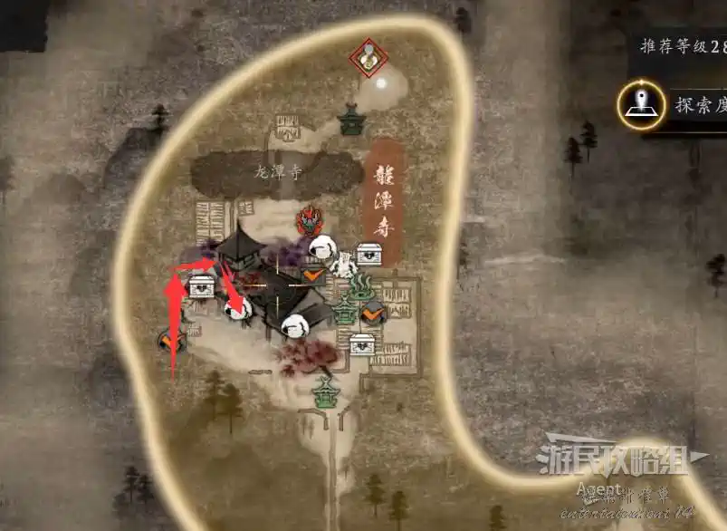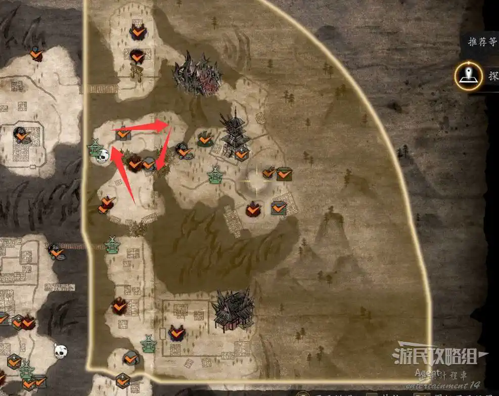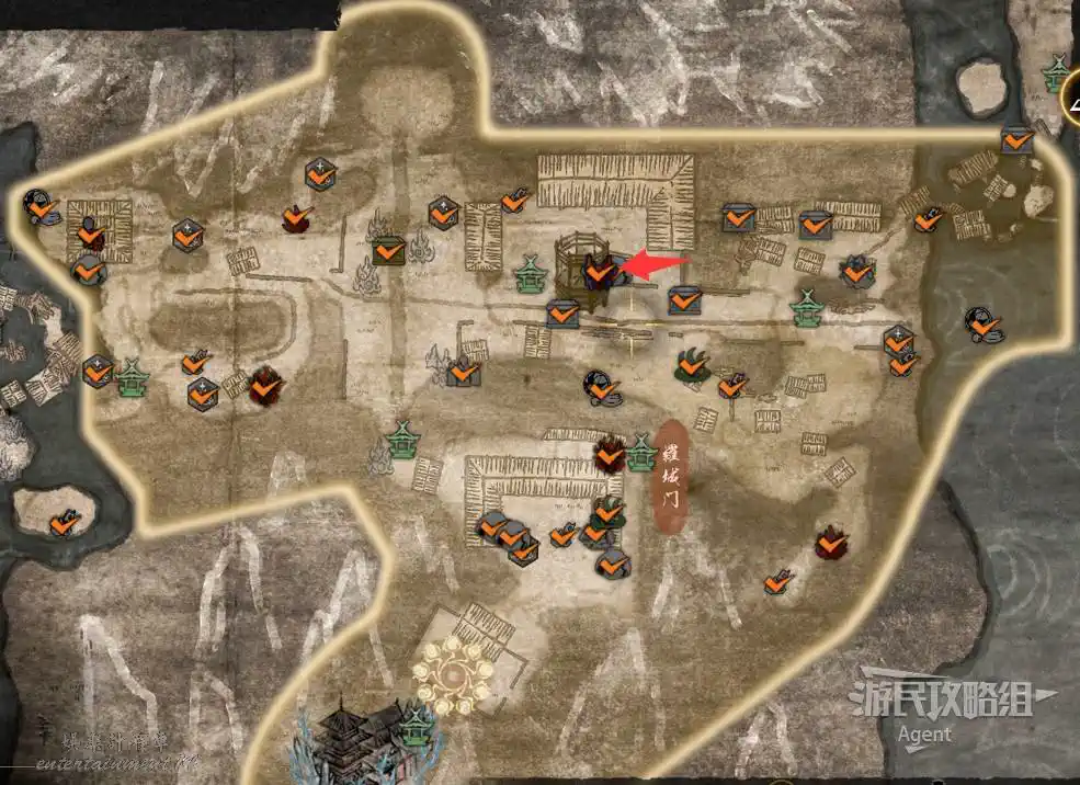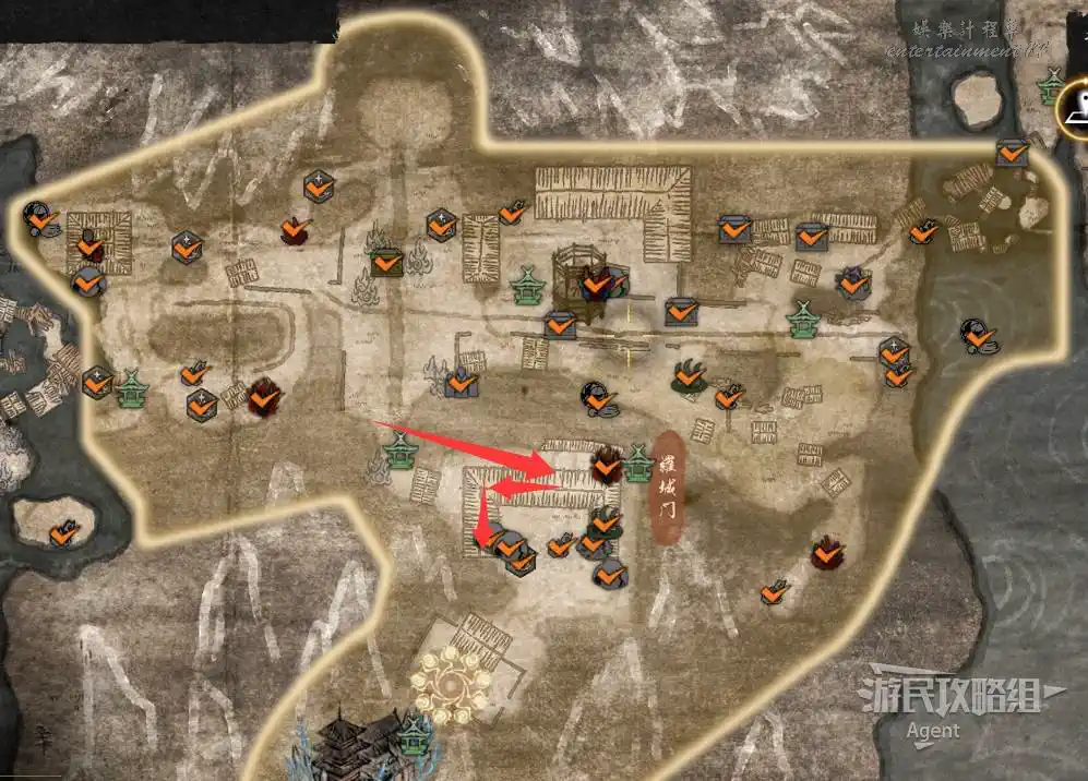 1、瞭望之丘神社南面有個村子,進村擊敗精英怪得到“焦黑的鑰匙”。