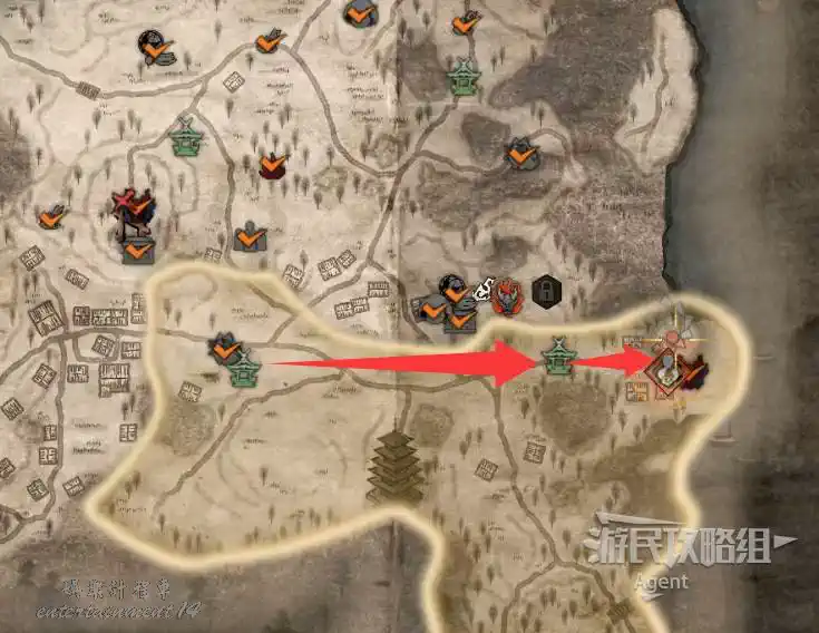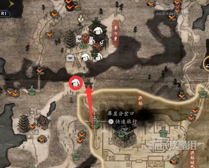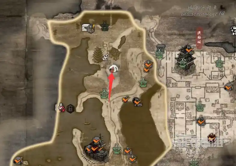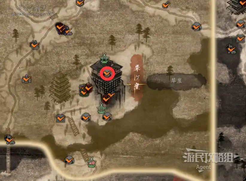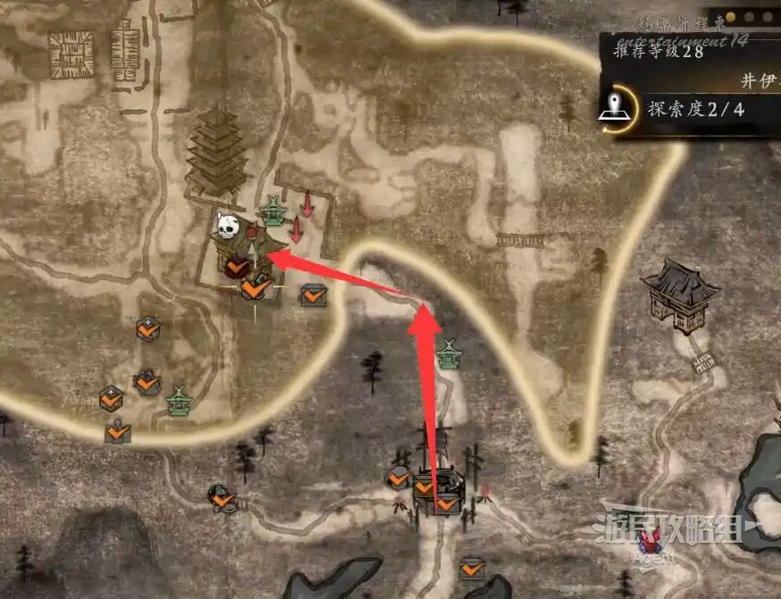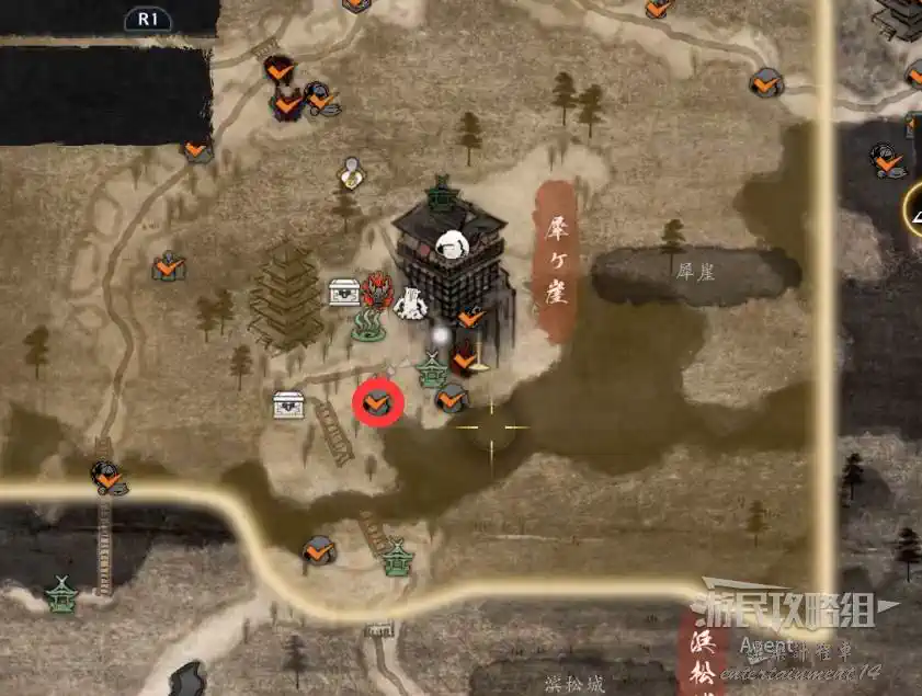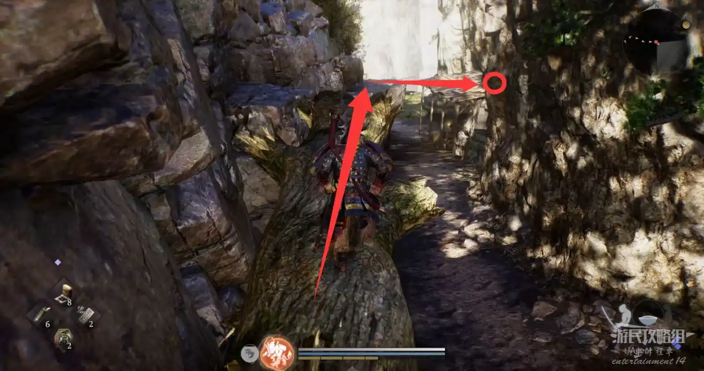 4、主線“犀崖之戰”解鎖東南的犀崖區域,從濱松城天守旁的小路,往北前往犀崖。
