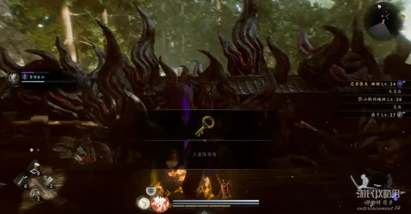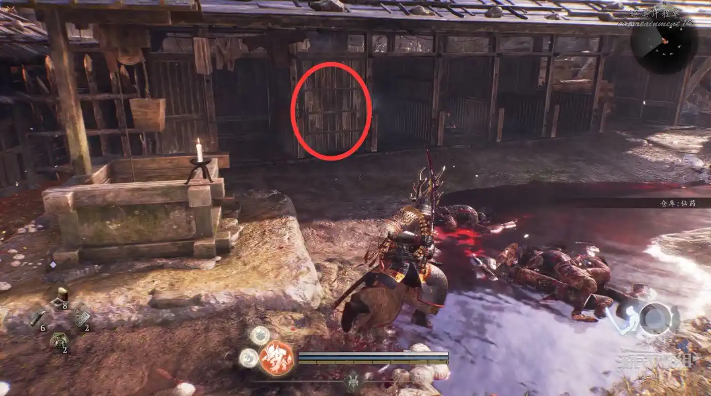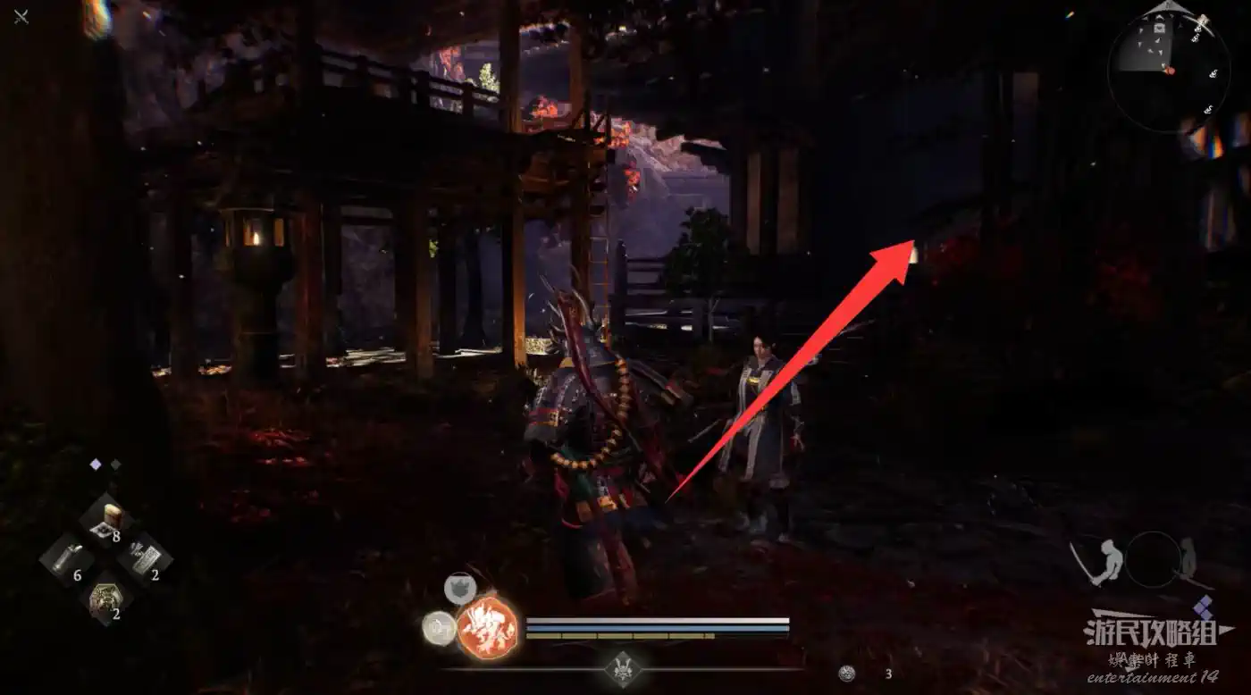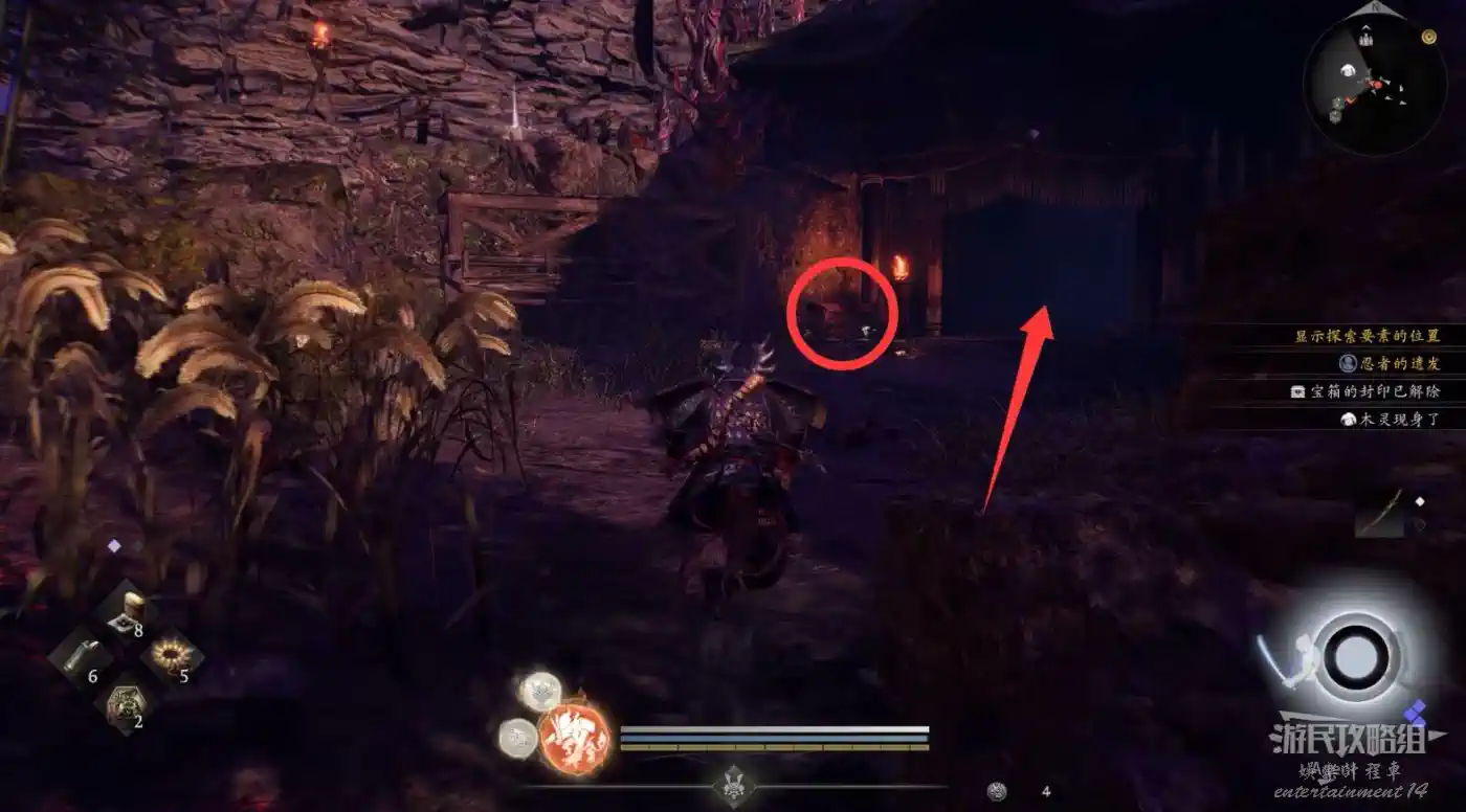 2、在井伊穀的廢寺墓地,打穿房子裡的小地獄拿到“三重塔鑰匙”。