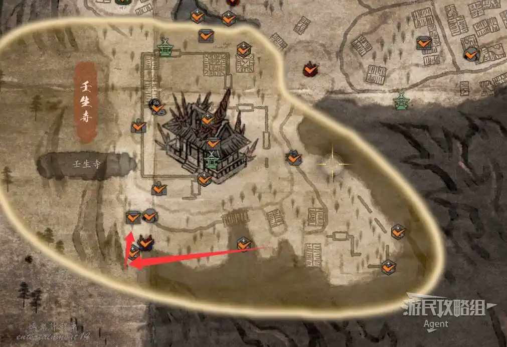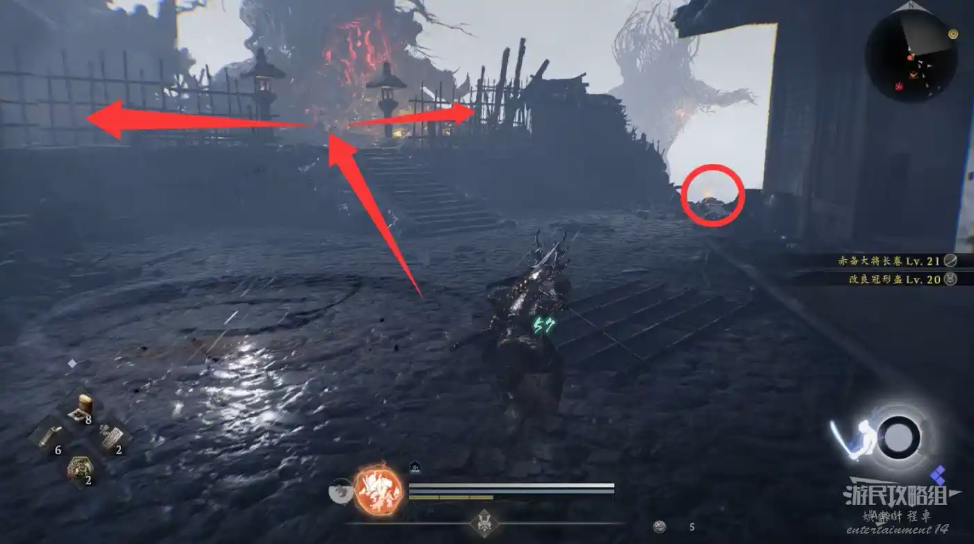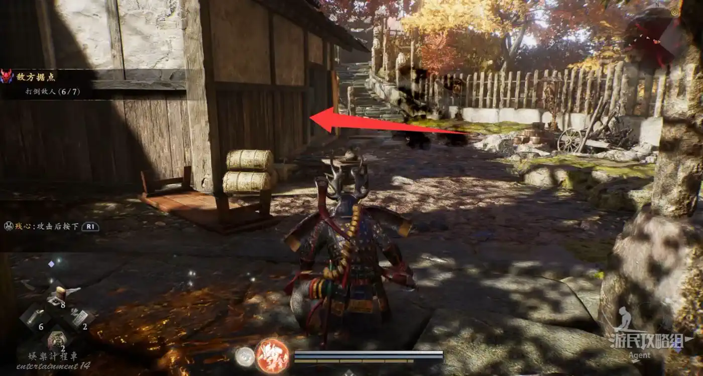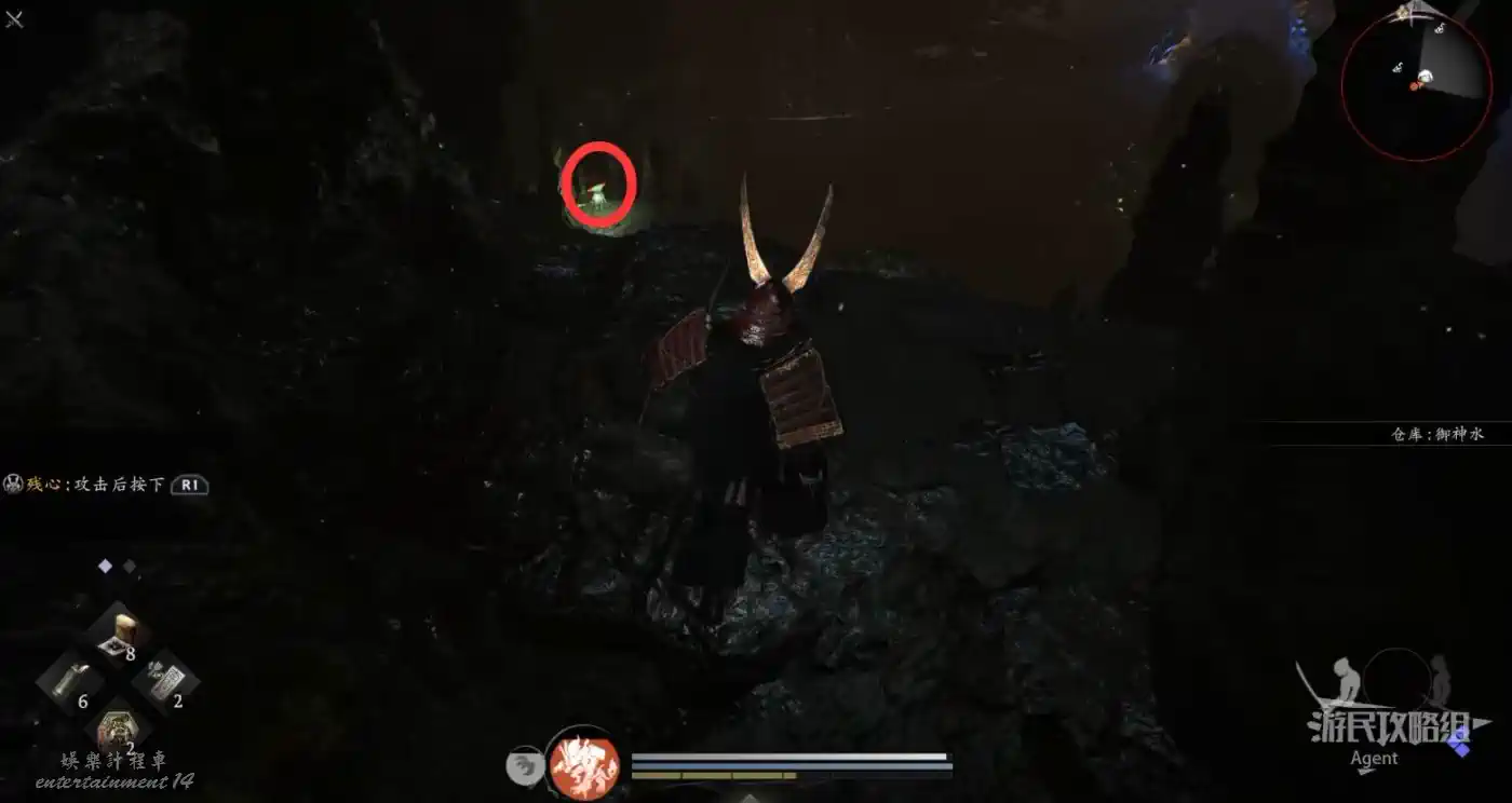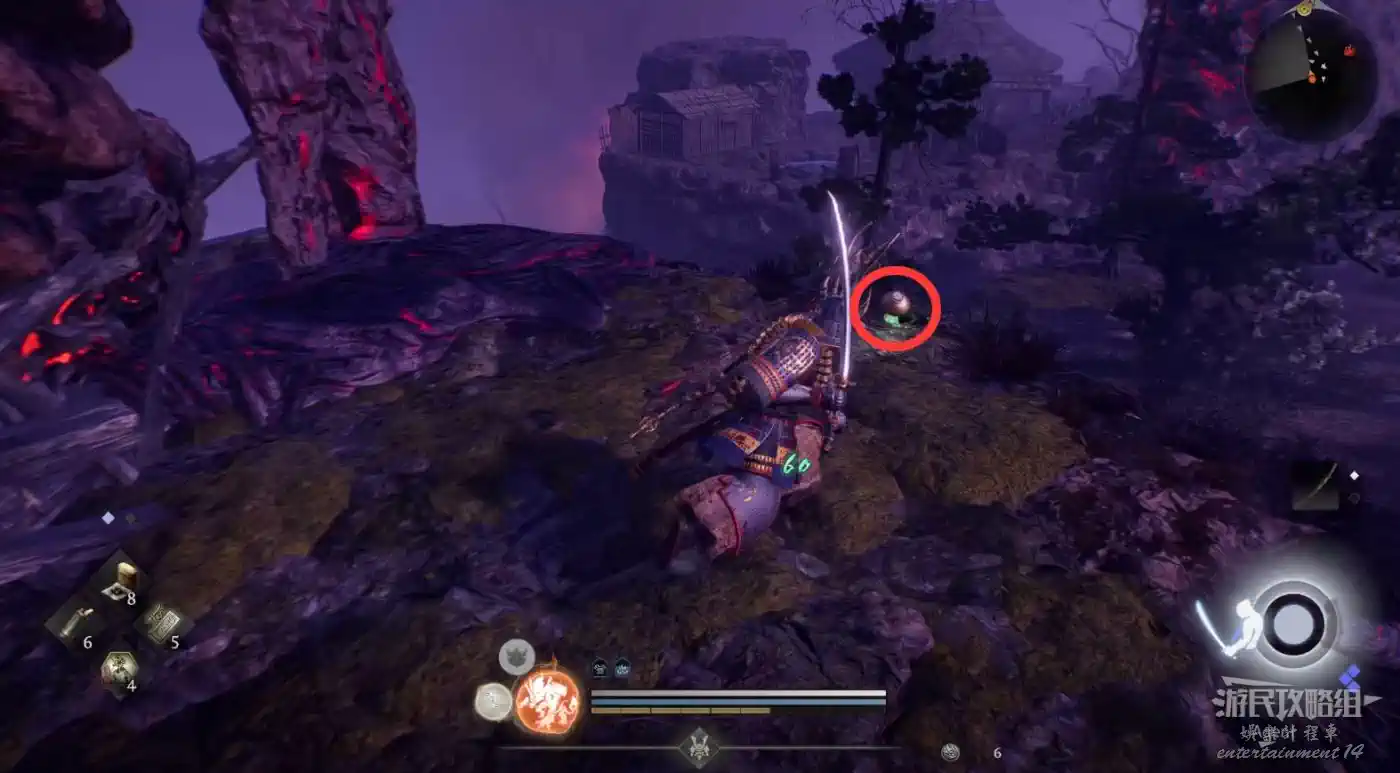 2、在井伊穀的廢寺墓地,打穿房子裡的小地獄拿到“三重塔鑰匙”。