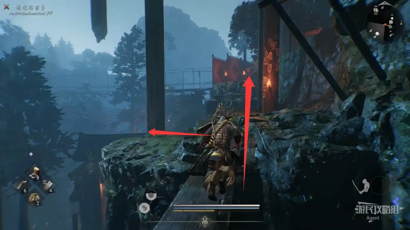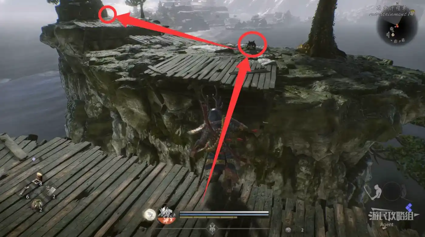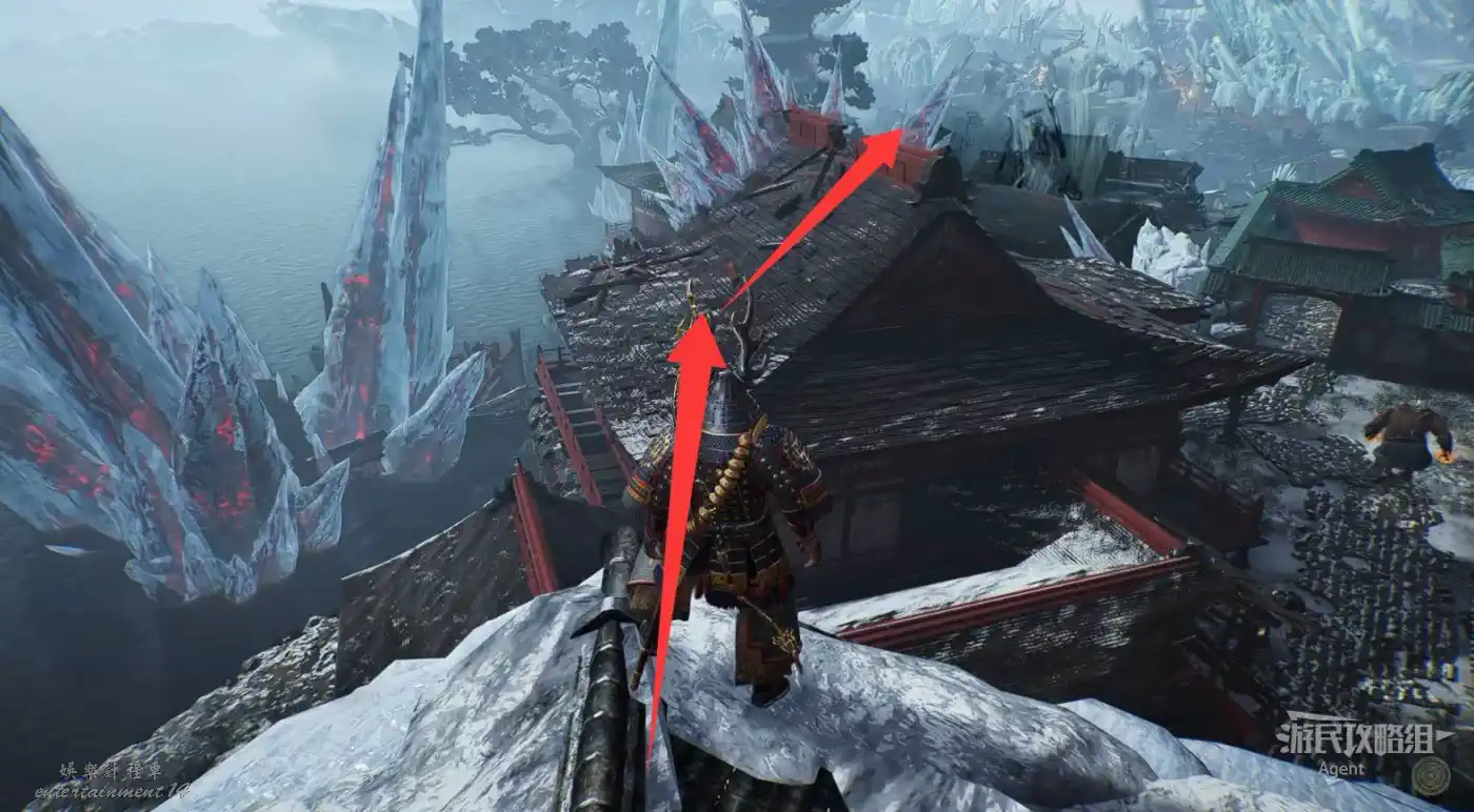 到上層啟動神社,然後穿過房子出來,懸崖邊拿到“牢房鑰匙”。