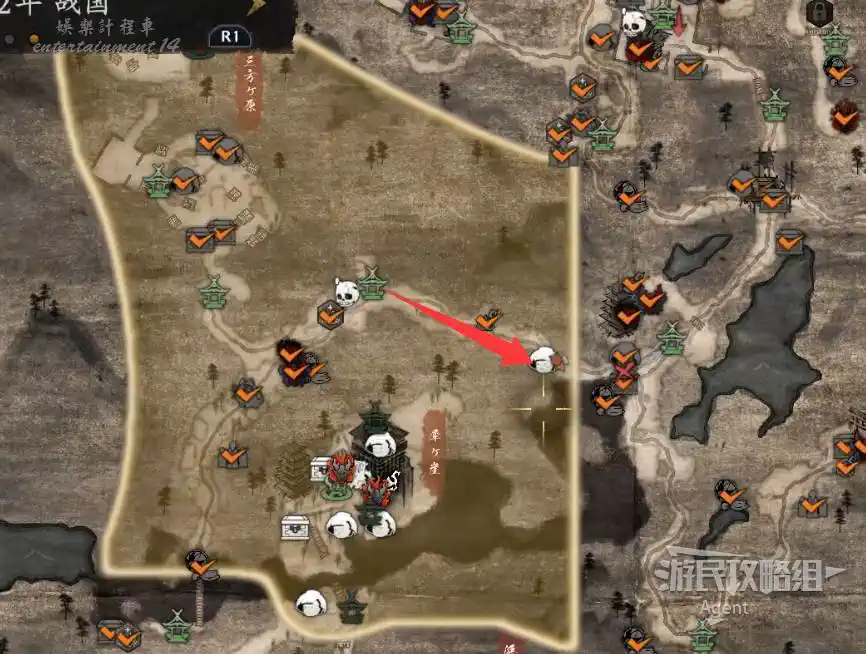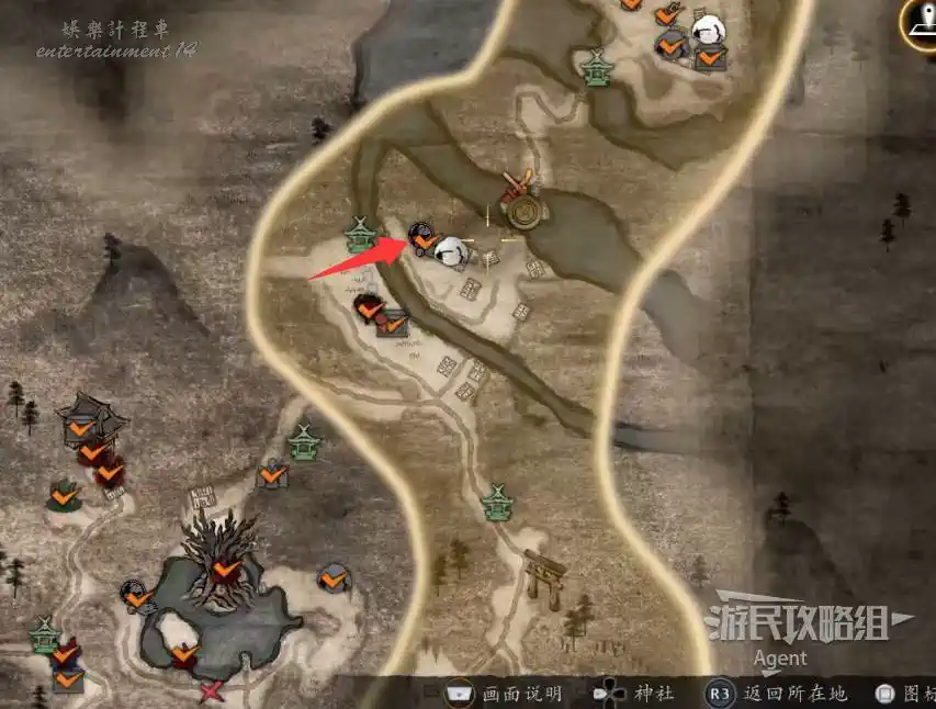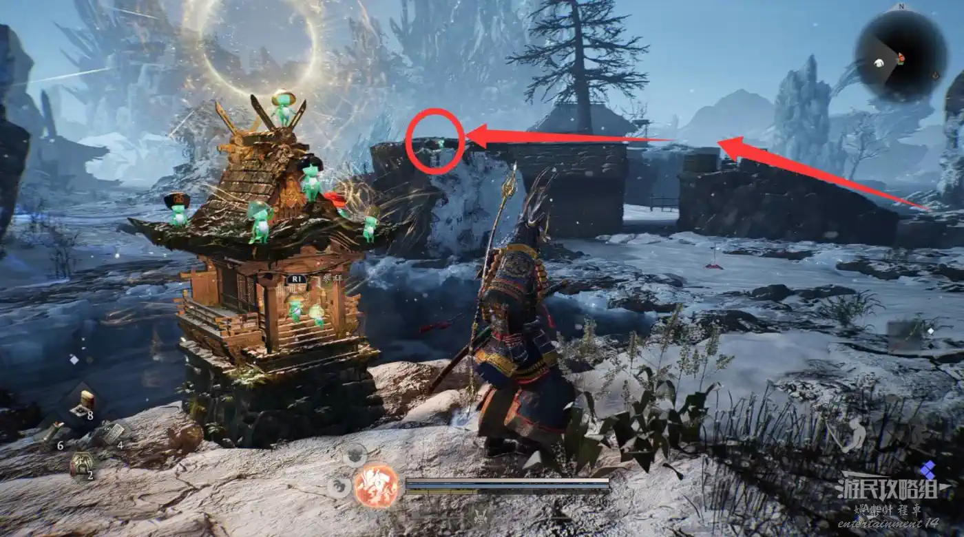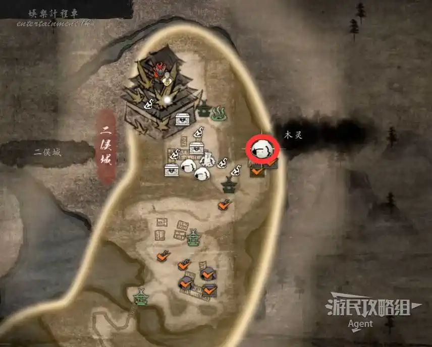2、主線“三方原之戰”解鎖北面的三方原區域,到下圖位置的房子後面,廢墟裡有只【木靈】。