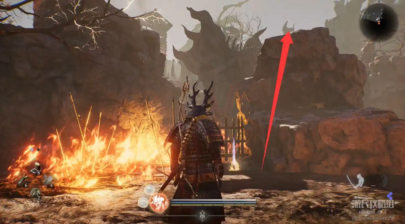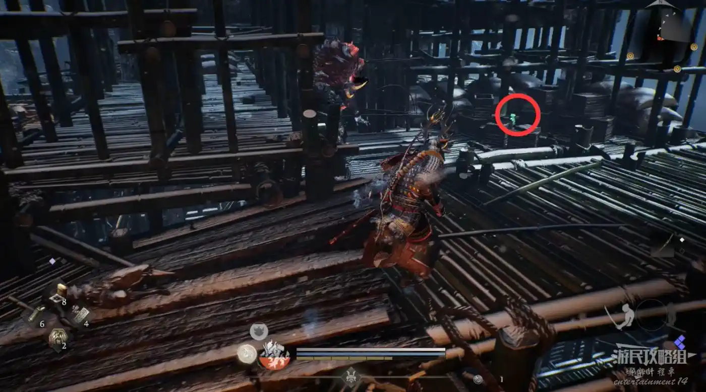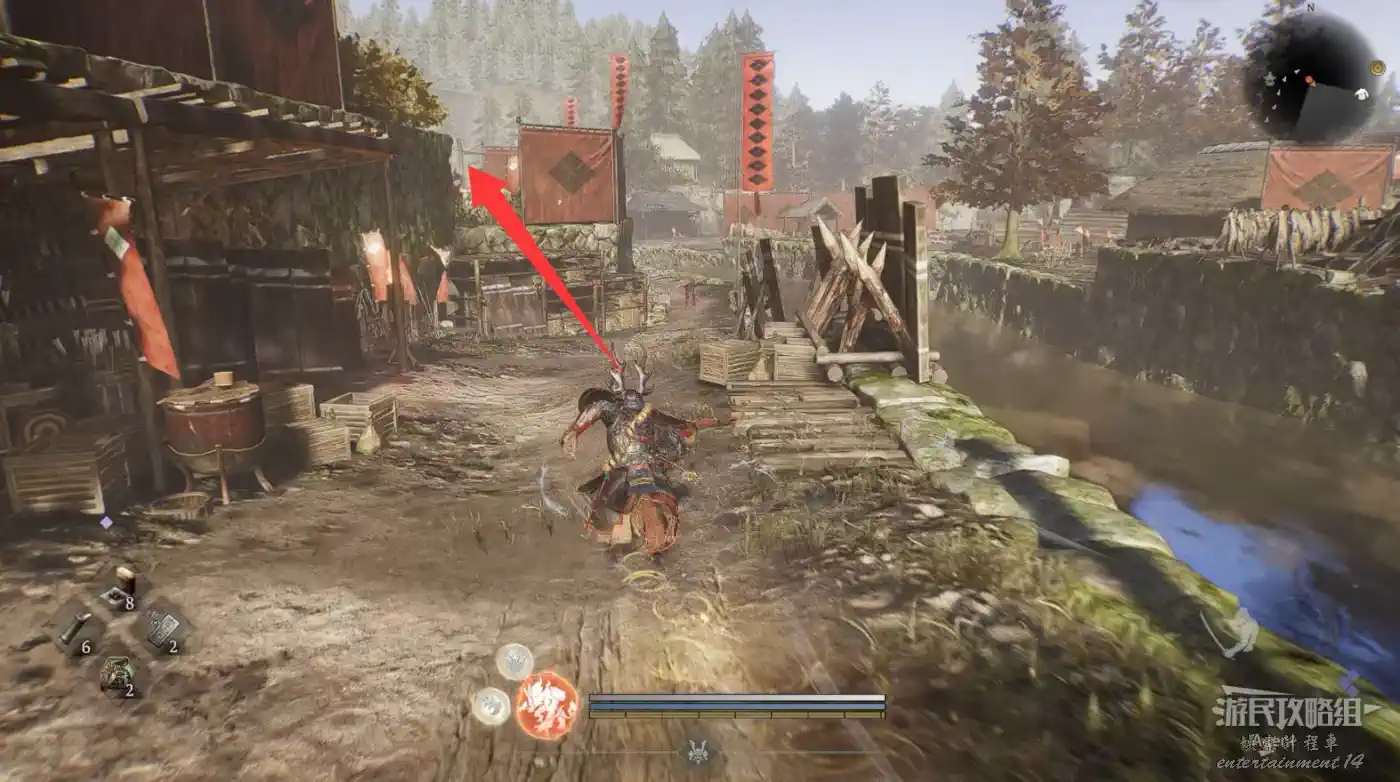 7、經過內參道神社後,在打武田信玄之前,左邊有個敵人在觀賞【木靈】。