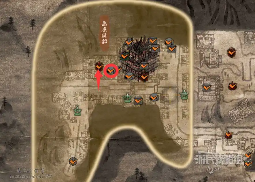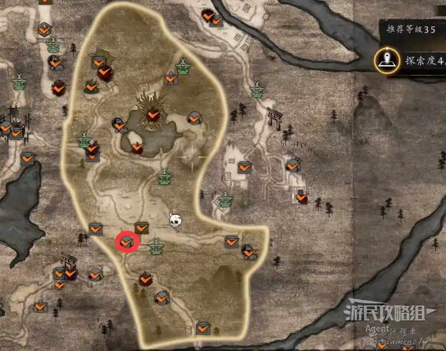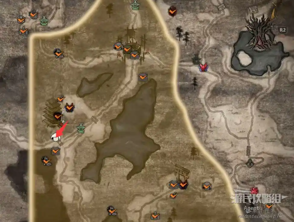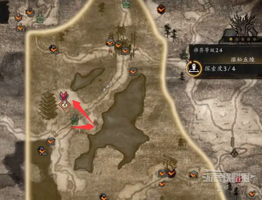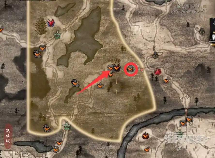 4、破除濱松的地獄後,下圖位置的草堆上有只【木靈】。