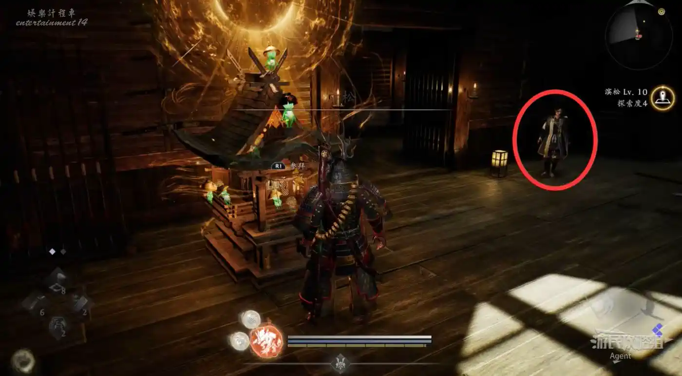 6、做井伊直虎的任務來到龍潭寺,穿過房子出來,院子裡有口鐘可以敲,然後進入北面的房子,房間角落有只【木靈】。
