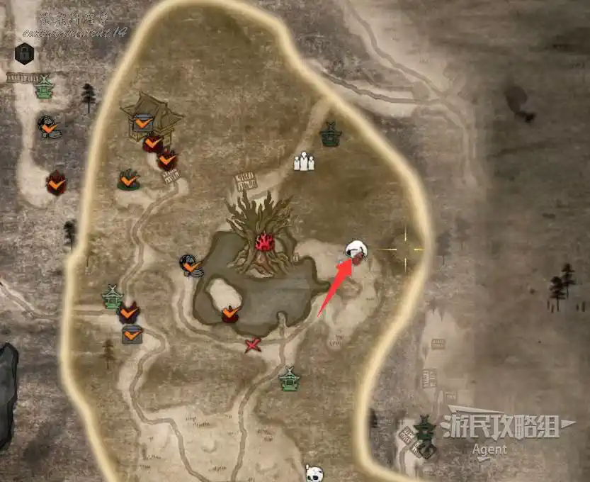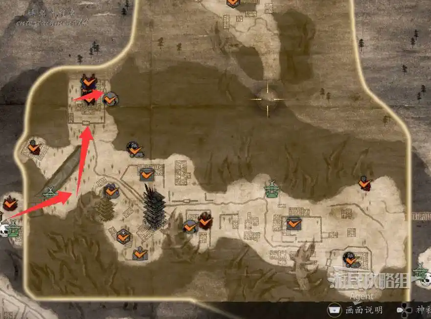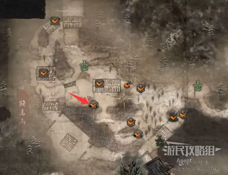 1、其他的路都有機槍,所以建議走南面這條路,到下圖位置有只【木靈】在房子裡,從房頂的洞進去。