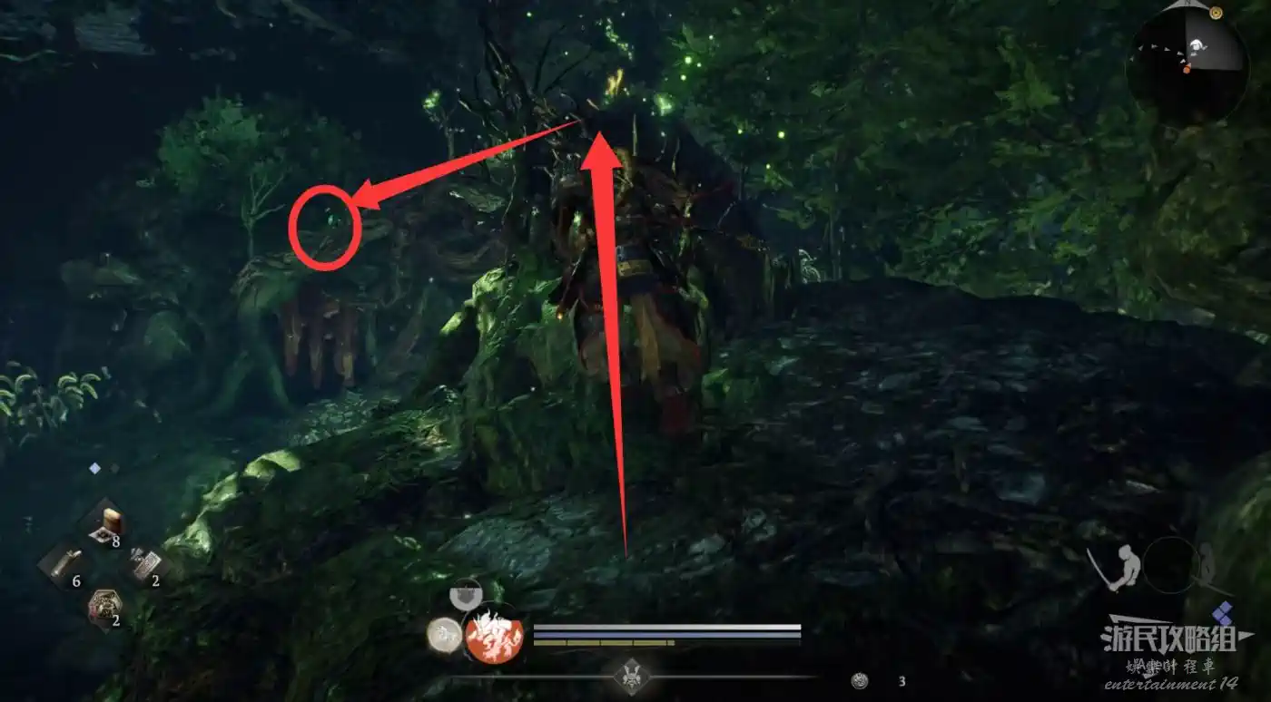 3、到塔東面探索,下圖位置的竹林裡有只【木靈】。