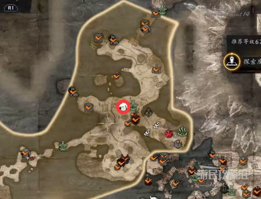 地圖上標著名字的兩塊區域:北面的三方原、東南的犀崖,都要等做主線時才會解鎖。