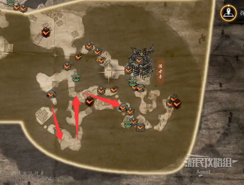 3、往北走,到這個院子清除據點後,通過靈脈到房頂。從房頂跳到二樓房檐上,從窗戶進入二樓拿到【木靈】和寶箱。