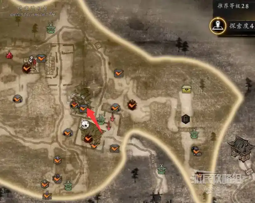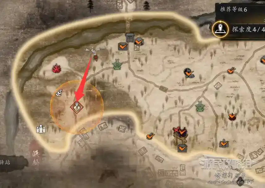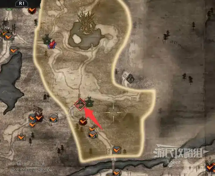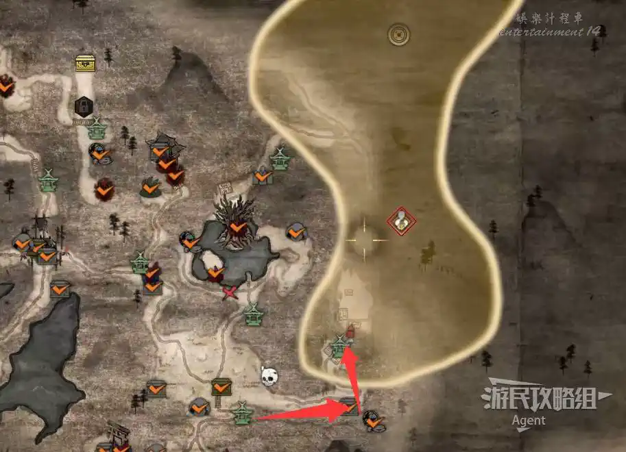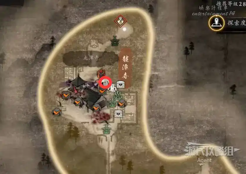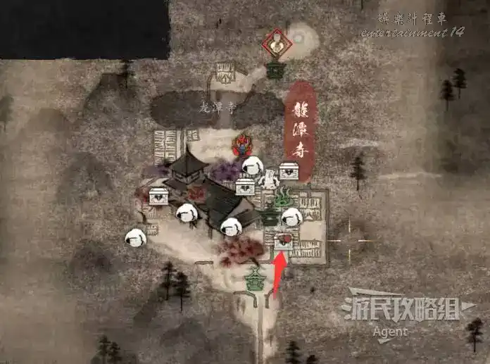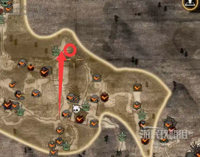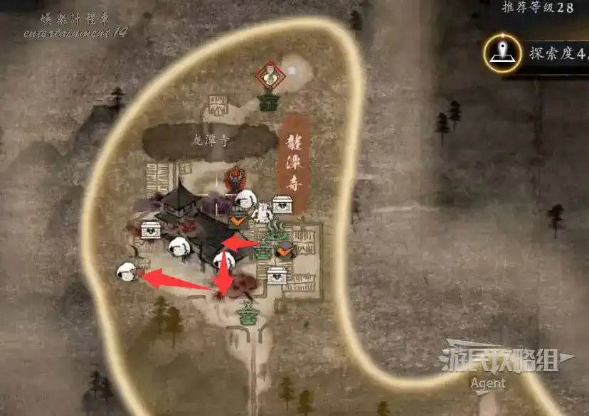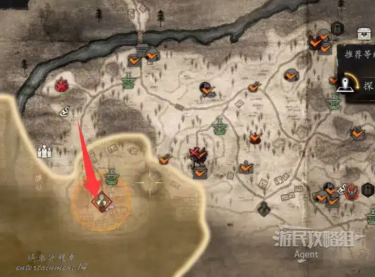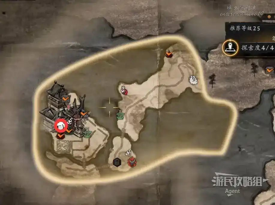 到井伊谷北部啟動大紅葉三叉路神社,在下圖圈出位置遇到神秘忍者,接到奇譚任務“生存於暗影者”。
