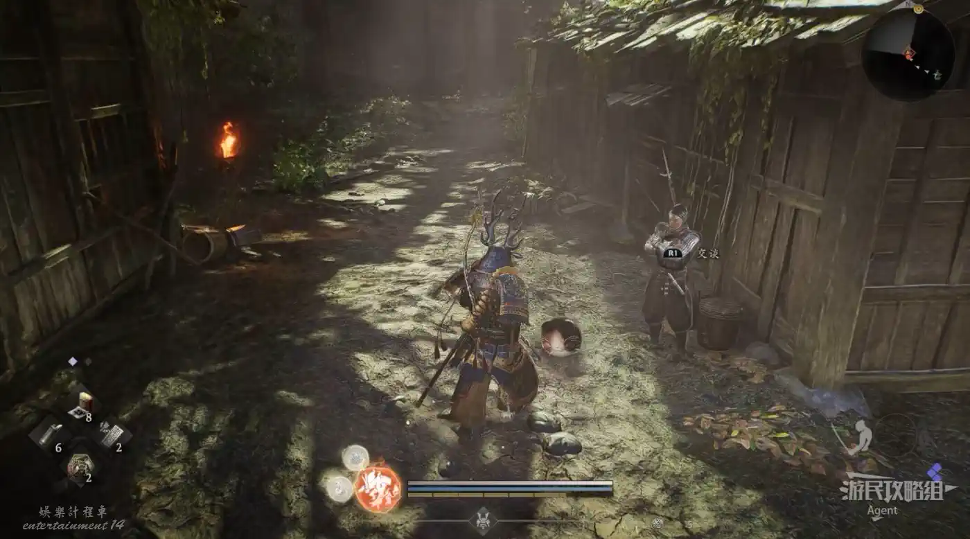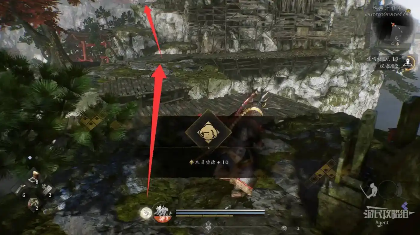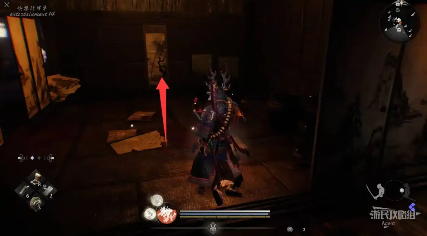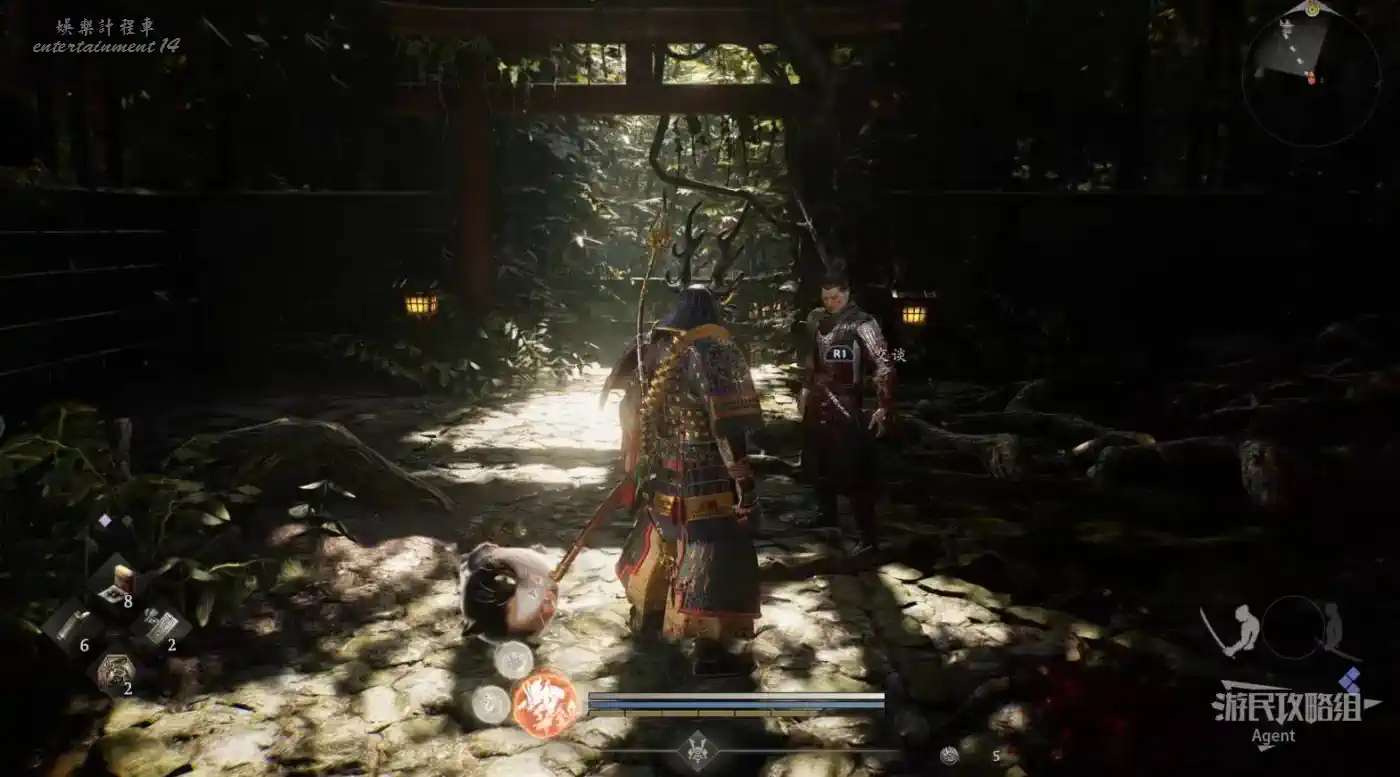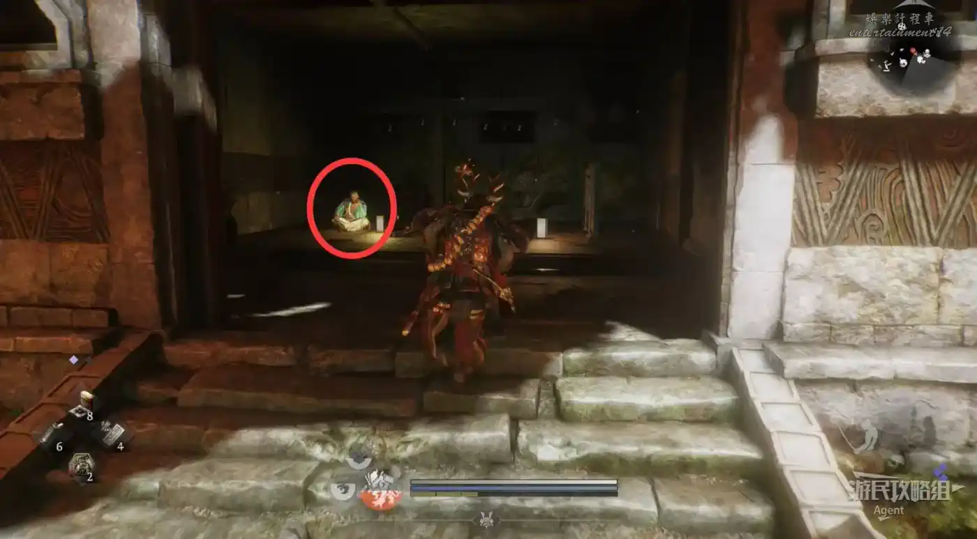 往北走,用廢棄神社鑰匙開門,和服部半藏的善擦“疾風丸”一起消滅怪物。