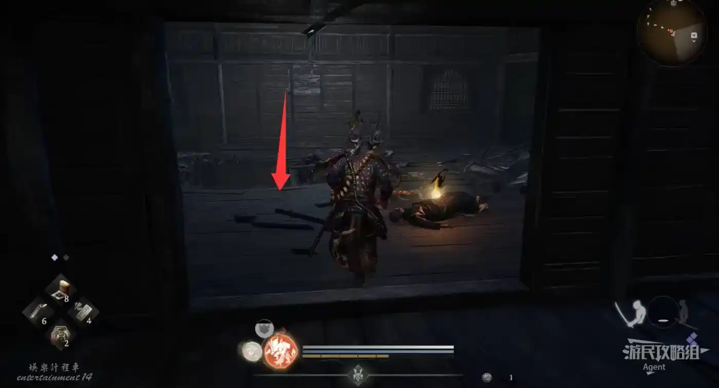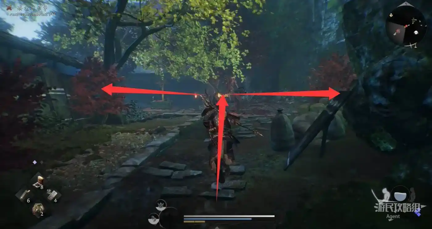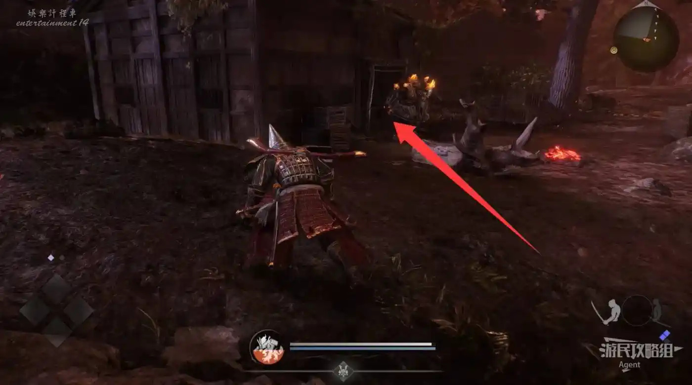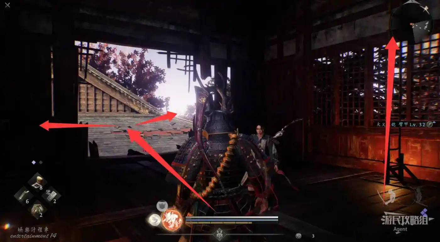 往北走,用廢棄神社鑰匙開門,和服部半藏的善擦“疾風丸”一起消滅怪物。