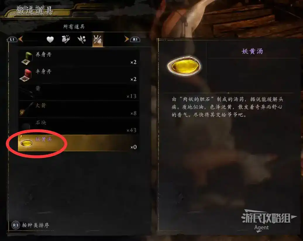 前往敵人營地,消滅敵人後,調查屍體拿到他為妻子製作的容平丸。
