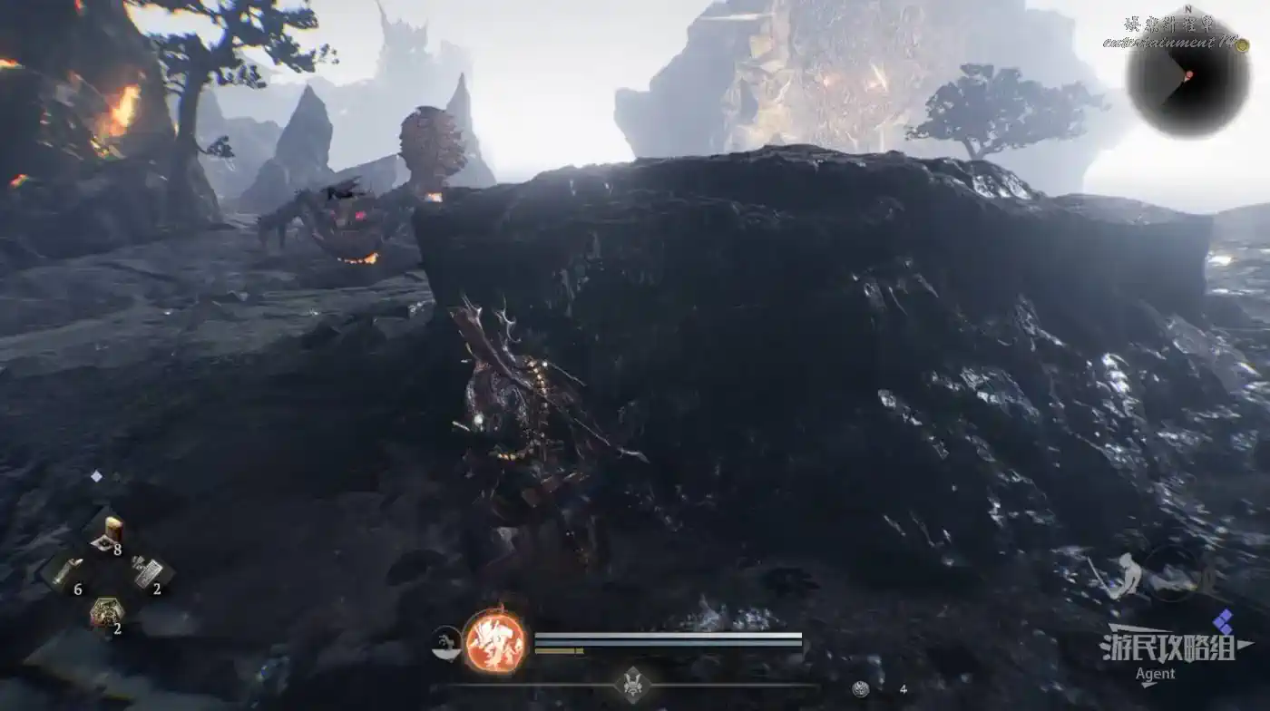 巨大怪物會不斷攻擊你,利用石塊當掩體躲避,然後趁它攻擊的間隙迅速移動。
