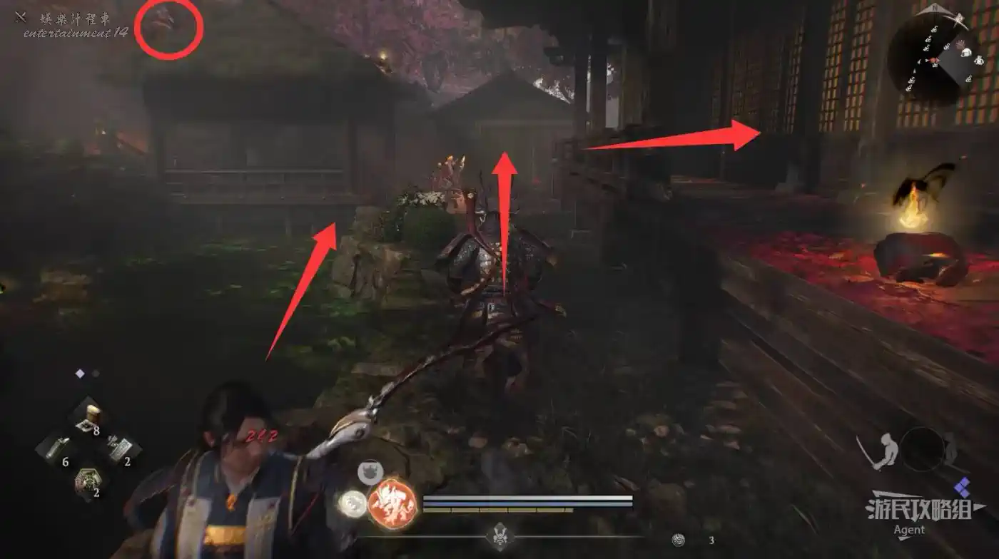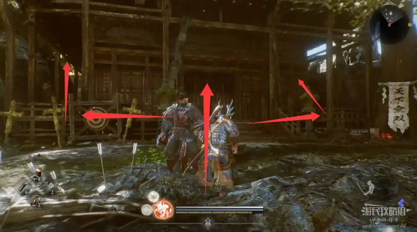 瞭望塔上有口鐘可以敲,然後到最北面的祠堂擊敗兩面宿儺,完成井伊直虎的任務。