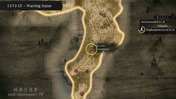 沿著主路向地圖最南端探索,接近“小熔爐”或“污穢溫泉”區域時,便可以在道路邊發現這組六地藏石像。
