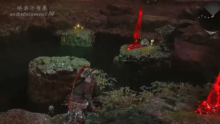 在該池塘北邊的一座神社附近,你可以遇到一隻善擦。與這隻善擦互動,它會開始奔跑並為你引路。