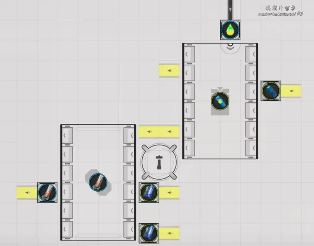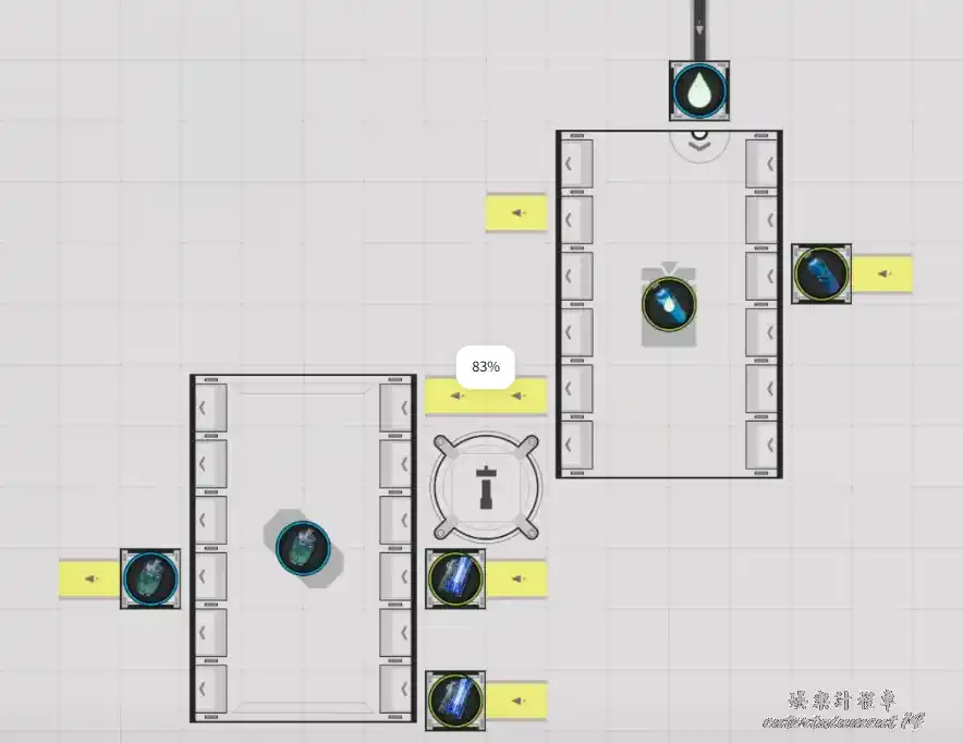功能概述:在集成核心區域放置此藍圖後,輸入緻密藍鐵粉末,自動生產鋼質瓶。