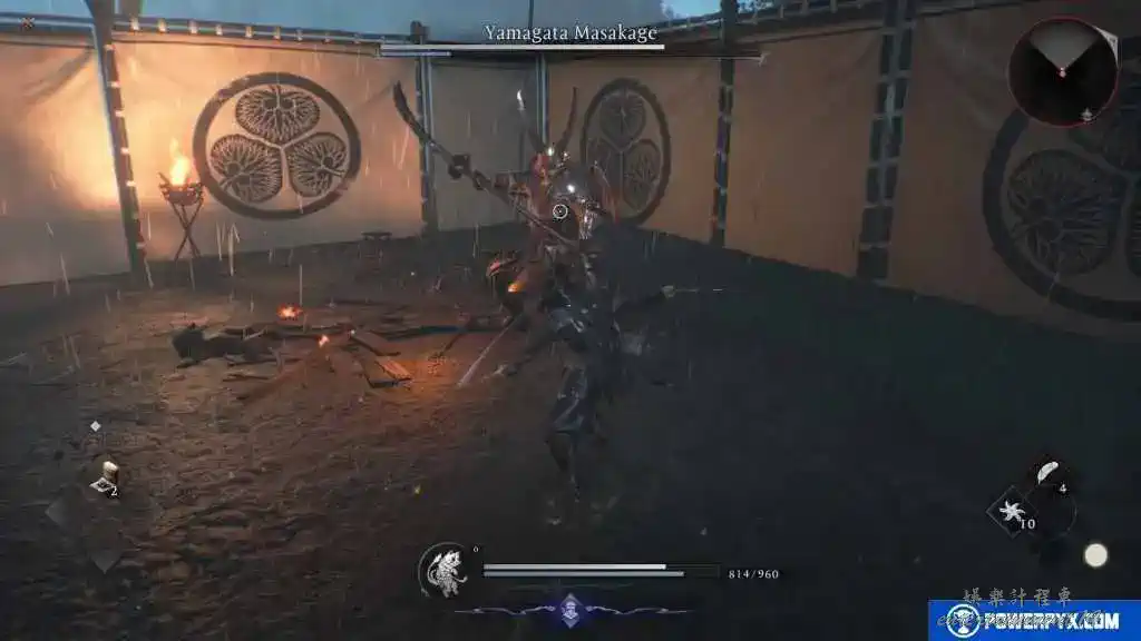 本作也繼承了仁王系列的一貫特點,最初幾個BOSS難度比較高。第一個BOSS山縣昌景是一名揮舞大太刀的人形敵人。其攻擊大約命中3-4次就能將角色擊殺。主要招式有刺擊、抓取、旋轉攻擊並造成範圍傷害。一個比較簡單的打法思路就在於集中削減他的精力(生命值下方的藍色條)。等待BOSS硬直,使用【△鍵】強攻擊造成大量傷害。建議在自身血量≤35%時及時治療(十字鍵-上)。同時別忘了在安全距離內使用忍術(R1+△/□)打出遠端攻擊。在前期這個階段還無法使用武士風格中的三段架勢,因此目前使用忍者風格搭配忍雙刀通常會更簡單。