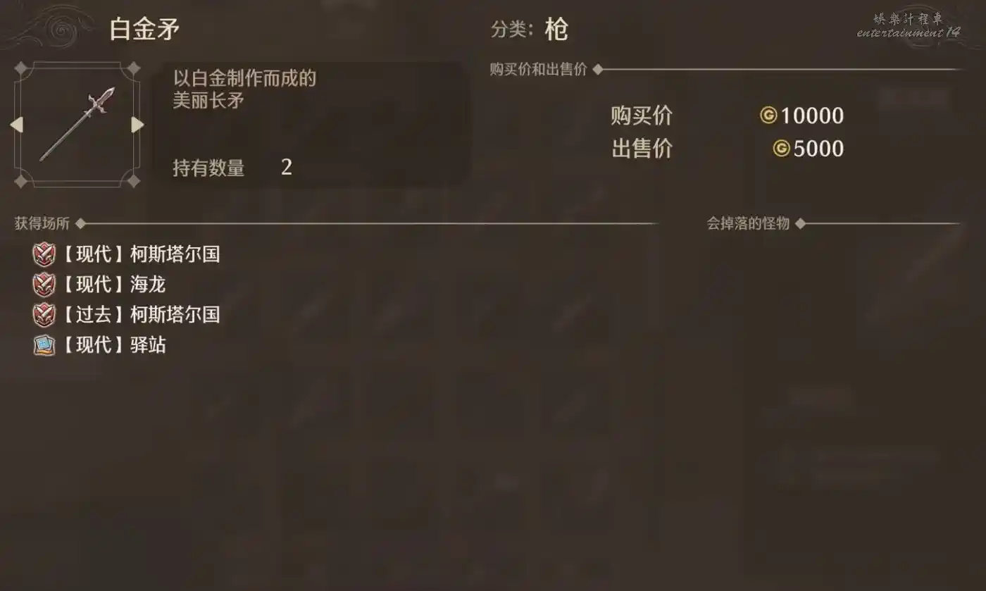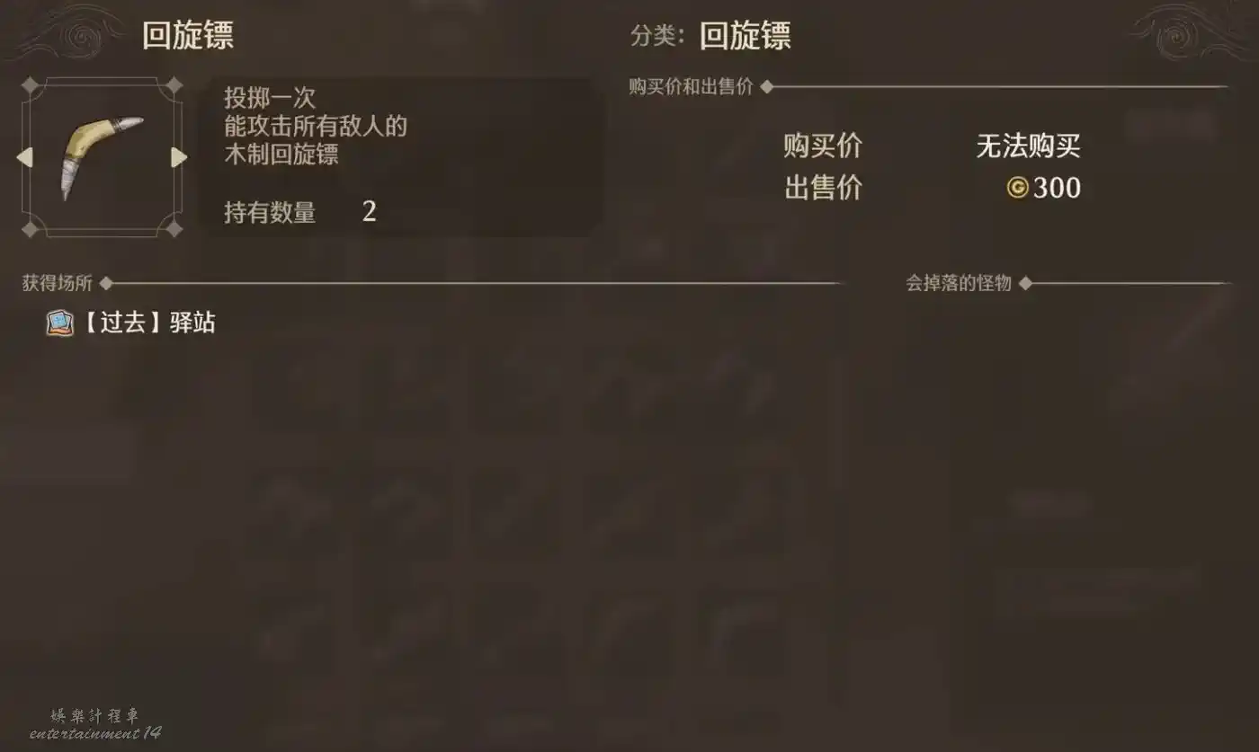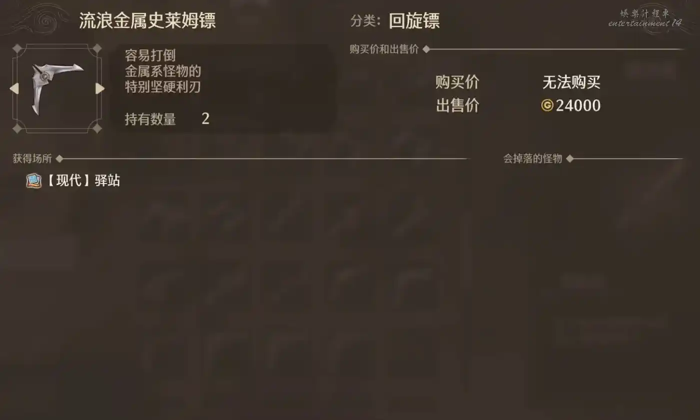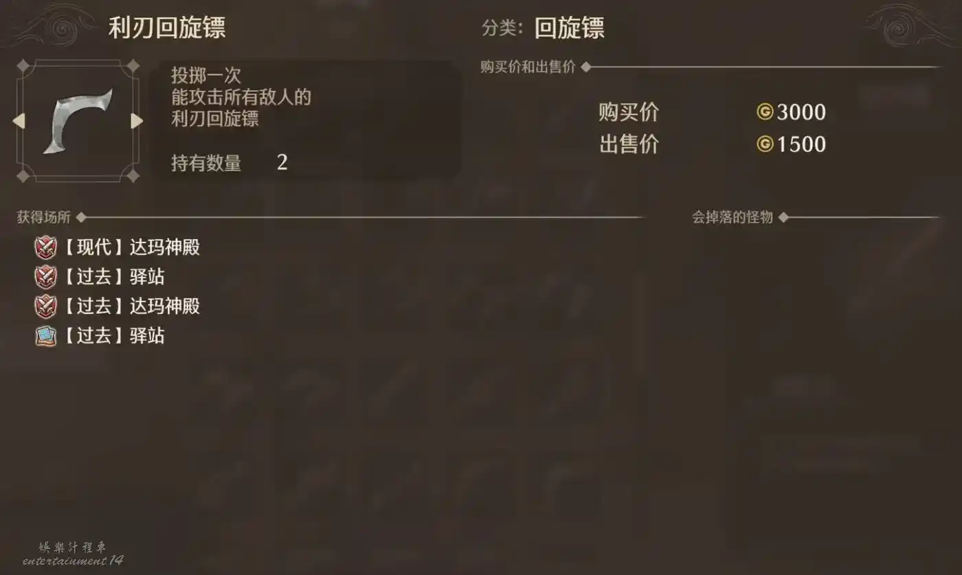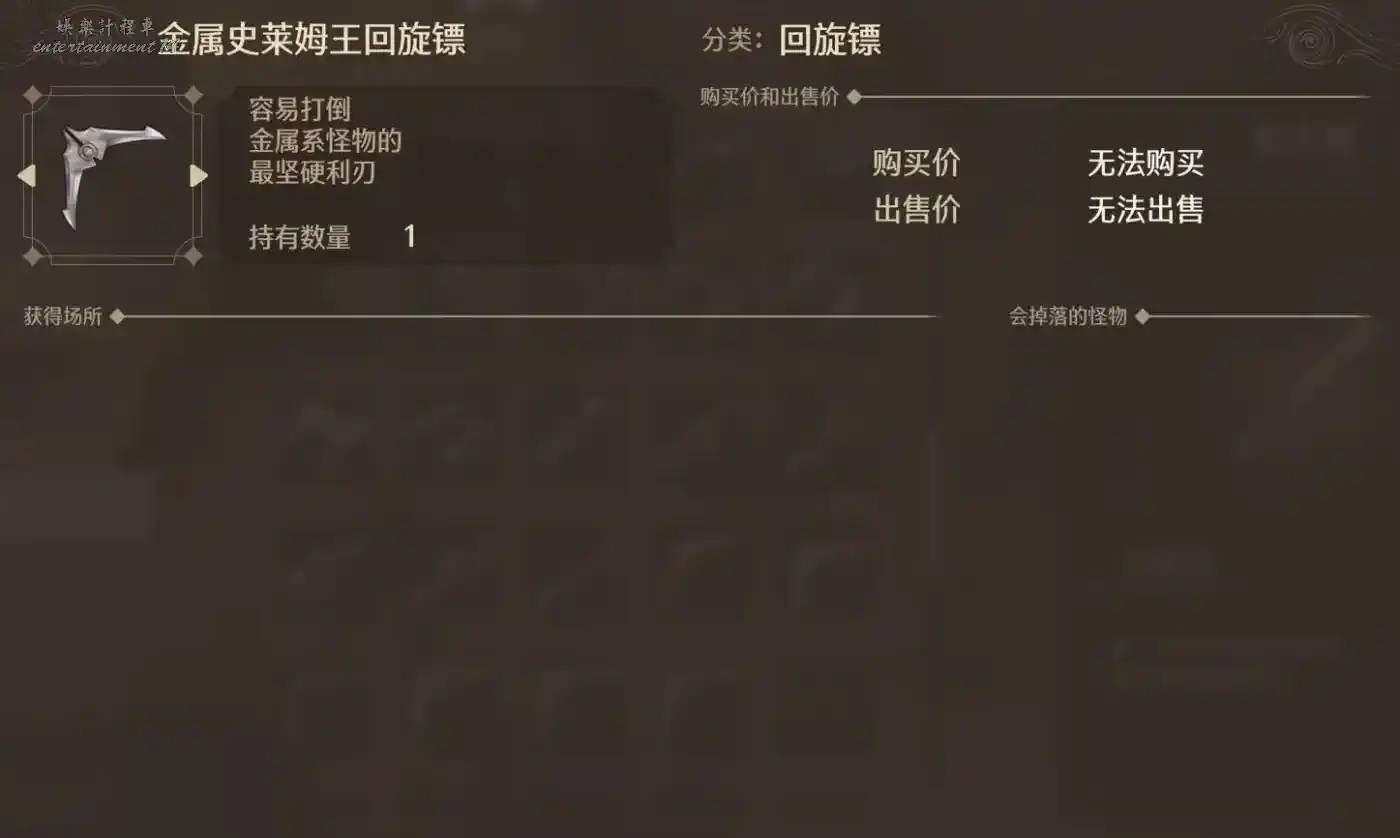 勇者鬥惡龍 7 Reimagined 武器圖鑒 8 2 月 2026-02-08 廣告 作者:從來不打無傷 來源:bilibili 沒寫獲得途徑的: 1.劇情獲得2.小徽章收集兌換3.競技場挑戰4.寶箱或者閃光點 翻翻樂寶箱限定:巨斧、流浪金屬史萊姆劍、流浪金屬史萊姆迴旋鏢 剩下沒寫的是2星、4星獎勵 柏木棍 銅劍 鋼鐵劍 破邪之劍 妖精之劍 鋸齒刀 冰刃 隼之劍 尤巴爾之劍 淺眠之劍 漣漪之劍 誘惑之劍 白金劍 梅爾文之劍 斬屍劍 光之劍 斬龍劍 火焰劍 雷鳴之劍 歌迪亞斯之劍 金屬史萊姆之劍 奇跡之劍 風雪之劍 手半劍 水龍之劍 王者之劍 流浪金屬史萊姆劍 海神之劍 彗星之劍 雙刃劍 破壞之劍 金屬史萊姆王劍 銀河之劍 真·水龍之劍 利骨 青銅短刀 神聖短刀 毒蛾短刀 毒針 刺客匕首 穿刺耳環 夜蝶短劍 竹矛 鐵矛 神聖之矛 白金矛 惡魔之矛 聖龍偃月刀 石斧 鐵斧 戰斧 巨斧 魔神之斧 石牙 鋼鐵之牙 魔獸之牙 奧利哈爾之牙 鐵爪 火焰之爪 龍爪 惡魔之爪 魔獸之爪 冥獸之爪 迴旋鏢 利刃迴旋鏢 火焰迴旋鏢 金屬史萊姆迴旋鏢 流浪金屬史萊姆鏢 金屬史萊姆王迴旋鏢 荊棘鞭 皮鞭 野獸鞭 鎖鏈鞭 晨星鞭 龍尾鞭 鋼鐵之鞭 古林蓋姆之鞭 破壞鐵球 超古林蓋姆之鞭 星之扇 月之扇 太陽之扇 聖王之扇 玫瑰人生 魔道士法杖 祝福之杖 沉睡法杖 妖精短杖 符文法杖 泰塔尼亞杖 冰之法杖 制裁法杖 封魔法杖 塞壬法杖 天譴法杖 雷鳴法杖 英雄之杖 賢者法杖 女神法杖 復活法杖 海鳴法杖 精靈王之杖 岩漿法杖 永恆法杖 棍棒 大木棰 大鐵錘 平底鍋 戰錘 魔神之錘 力量之爪
