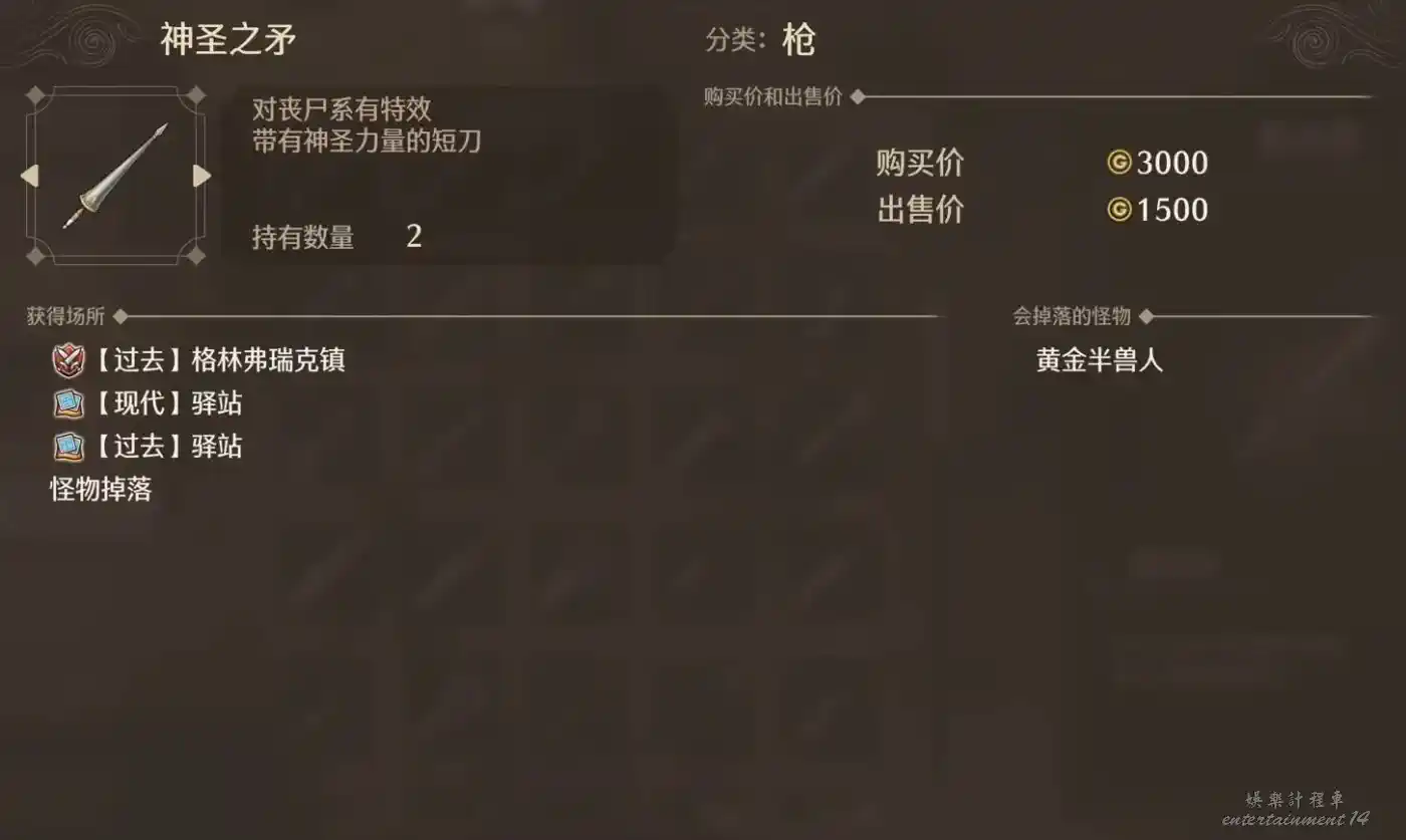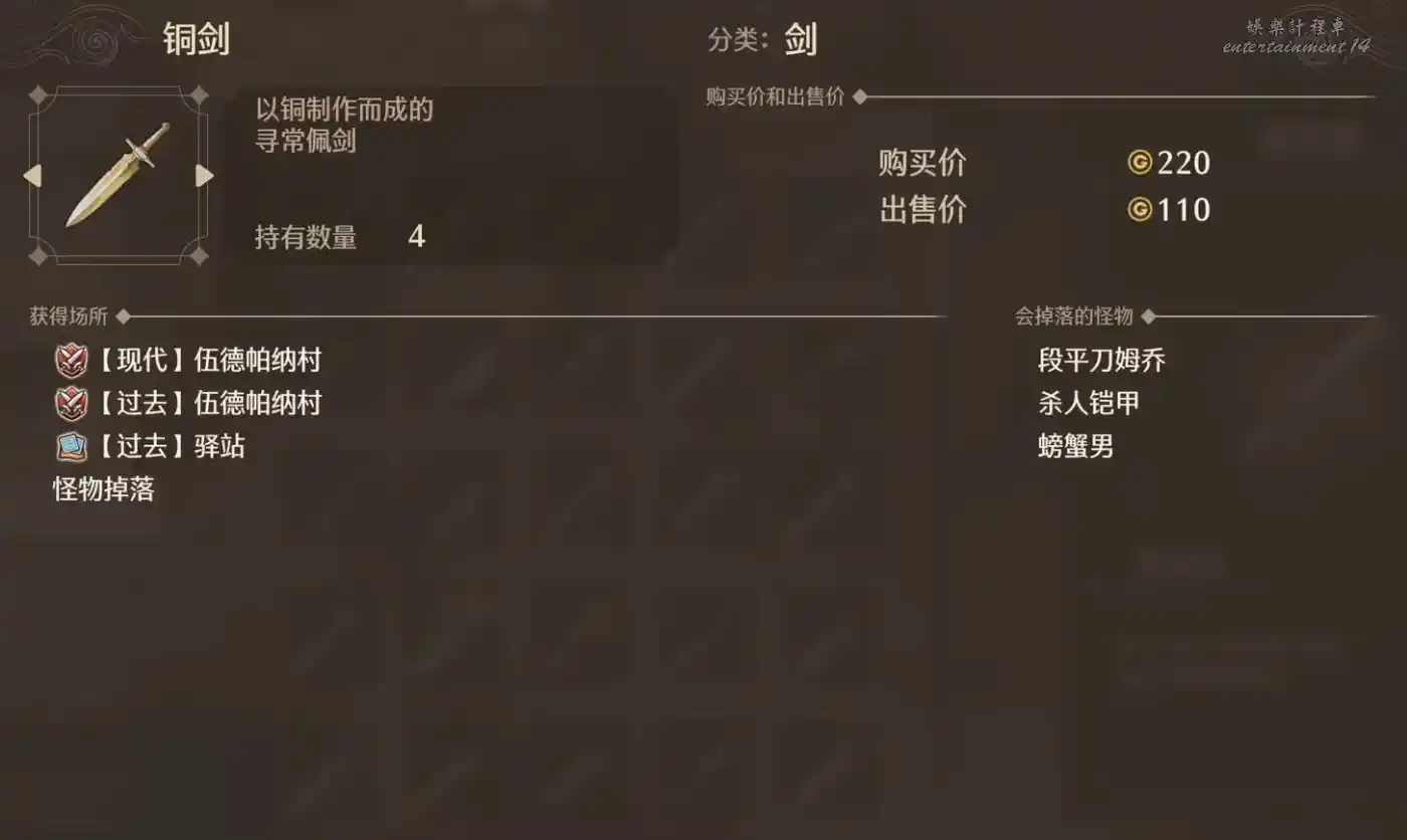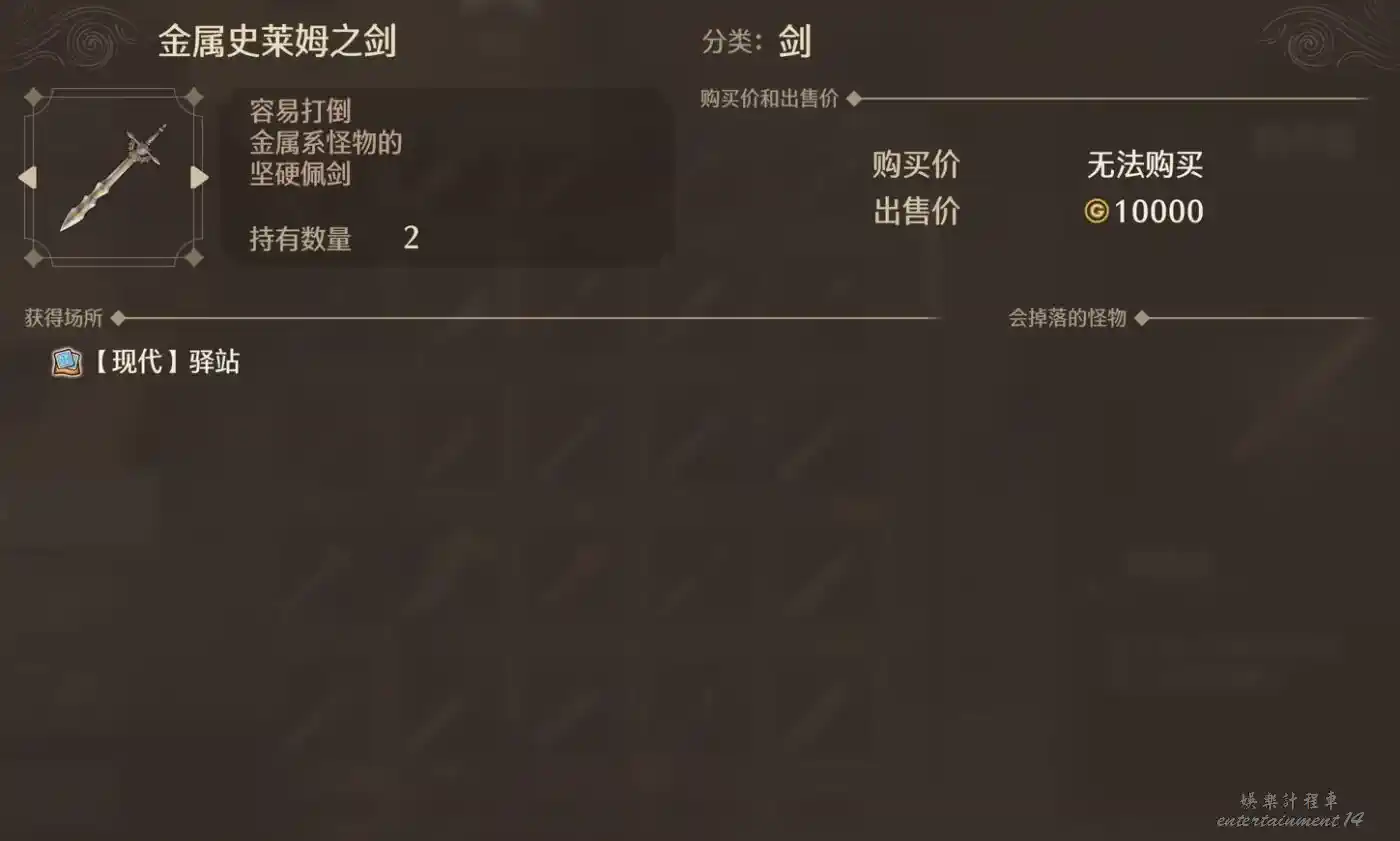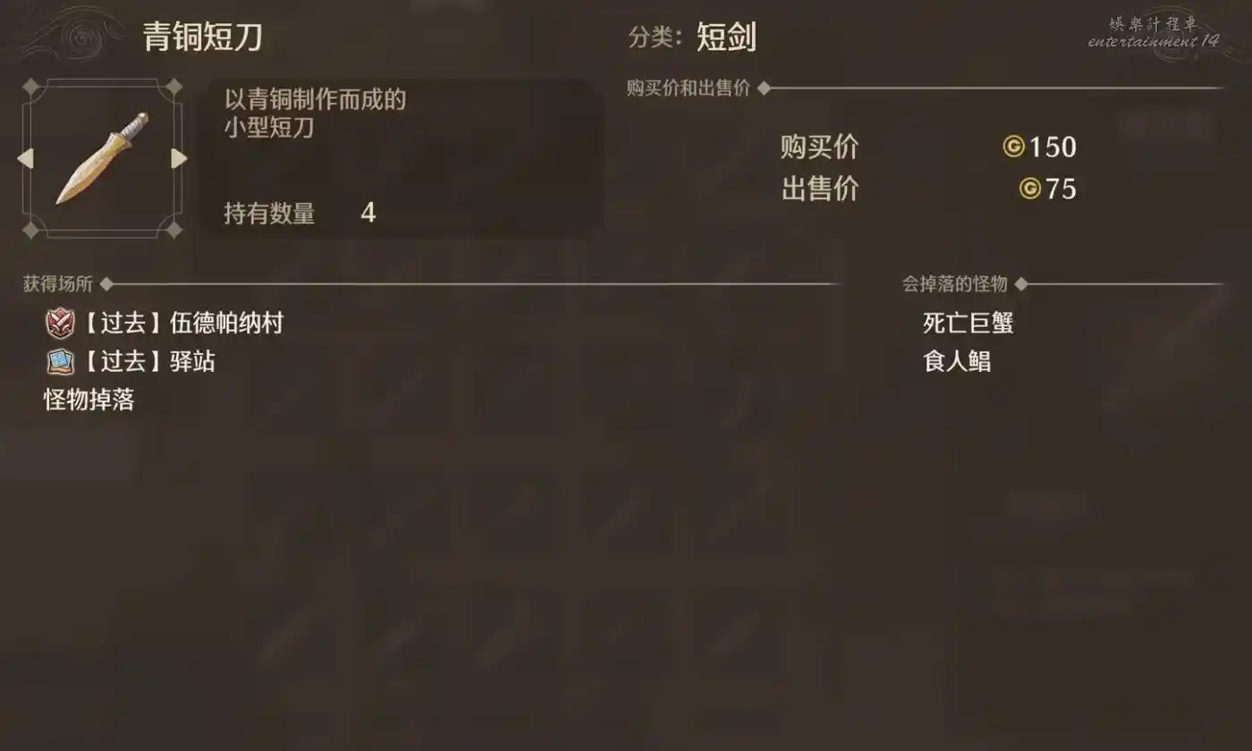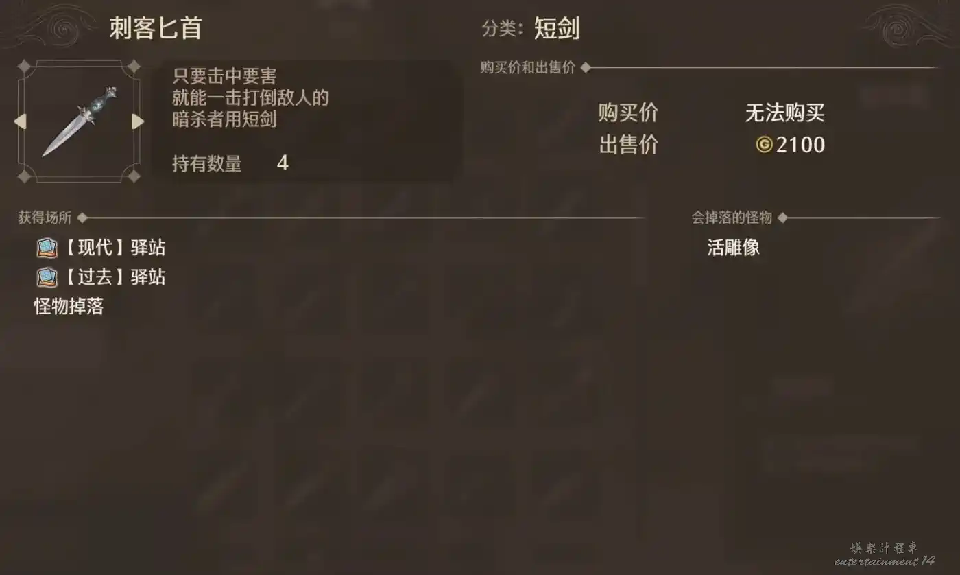 勇者鬥惡龍 7 Reimagined 武器圖鑒 8 2 月 2026-02-08 廣告 作者:從來不打無傷 來源:bilibili 沒寫獲得途徑的: 1.劇情獲得2.小徽章收集兌換3.競技場挑戰4.寶箱或者閃光點 翻翻樂寶箱限定:巨斧、流浪金屬史萊姆劍、流浪金屬史萊姆迴旋鏢 剩下沒寫的是2星、4星獎勵 柏木棍 銅劍 鋼鐵劍 破邪之劍 妖精之劍 鋸齒刀 冰刃 隼之劍 尤巴爾之劍 淺眠之劍 漣漪之劍 誘惑之劍 白金劍 梅爾文之劍 斬屍劍 光之劍 斬龍劍 火焰劍 雷鳴之劍 歌迪亞斯之劍 金屬史萊姆之劍 奇跡之劍 風雪之劍 手半劍 水龍之劍 王者之劍 流浪金屬史萊姆劍 海神之劍 彗星之劍 雙刃劍 破壞之劍 金屬史萊姆王劍 銀河之劍 真·水龍之劍 利骨 青銅短刀 神聖短刀 毒蛾短刀 毒針 刺客匕首 穿刺耳環 夜蝶短劍 竹矛 鐵矛 神聖之矛 白金矛 惡魔之矛 聖龍偃月刀 石斧 鐵斧 戰斧 巨斧 魔神之斧 石牙 鋼鐵之牙 魔獸之牙 奧利哈爾之牙 鐵爪 火焰之爪 龍爪 惡魔之爪 魔獸之爪 冥獸之爪 迴旋鏢 利刃迴旋鏢 火焰迴旋鏢 金屬史萊姆迴旋鏢 流浪金屬史萊姆鏢 金屬史萊姆王迴旋鏢 荊棘鞭 皮鞭 野獸鞭 鎖鏈鞭 晨星鞭 龍尾鞭 鋼鐵之鞭 古林蓋姆之鞭 破壞鐵球 超古林蓋姆之鞭 星之扇 月之扇 太陽之扇 聖王之扇 玫瑰人生 魔道士法杖 祝福之杖 沉睡法杖 妖精短杖 符文法杖 泰塔尼亞杖 冰之法杖 制裁法杖 封魔法杖 塞壬法杖 天譴法杖 雷鳴法杖 英雄之杖 賢者法杖 女神法杖 復活法杖 海鳴法杖 精靈王之杖 岩漿法杖 永恆法杖 棍棒 大木棰 大鐵錘 平底鍋 戰錘 魔神之錘 力量之爪