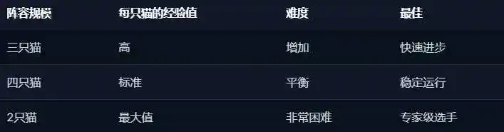 你不需要每次出行都帶四隻貓。帶三隻貓可以更快升級,因為你不用四人分戰後升級。雖然這讓跑動更難,但加速的成長往往彌補了小隊規模的不足。