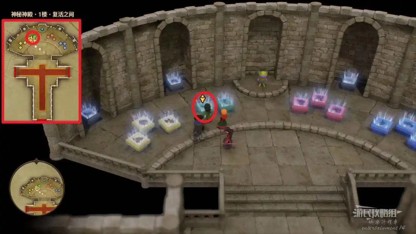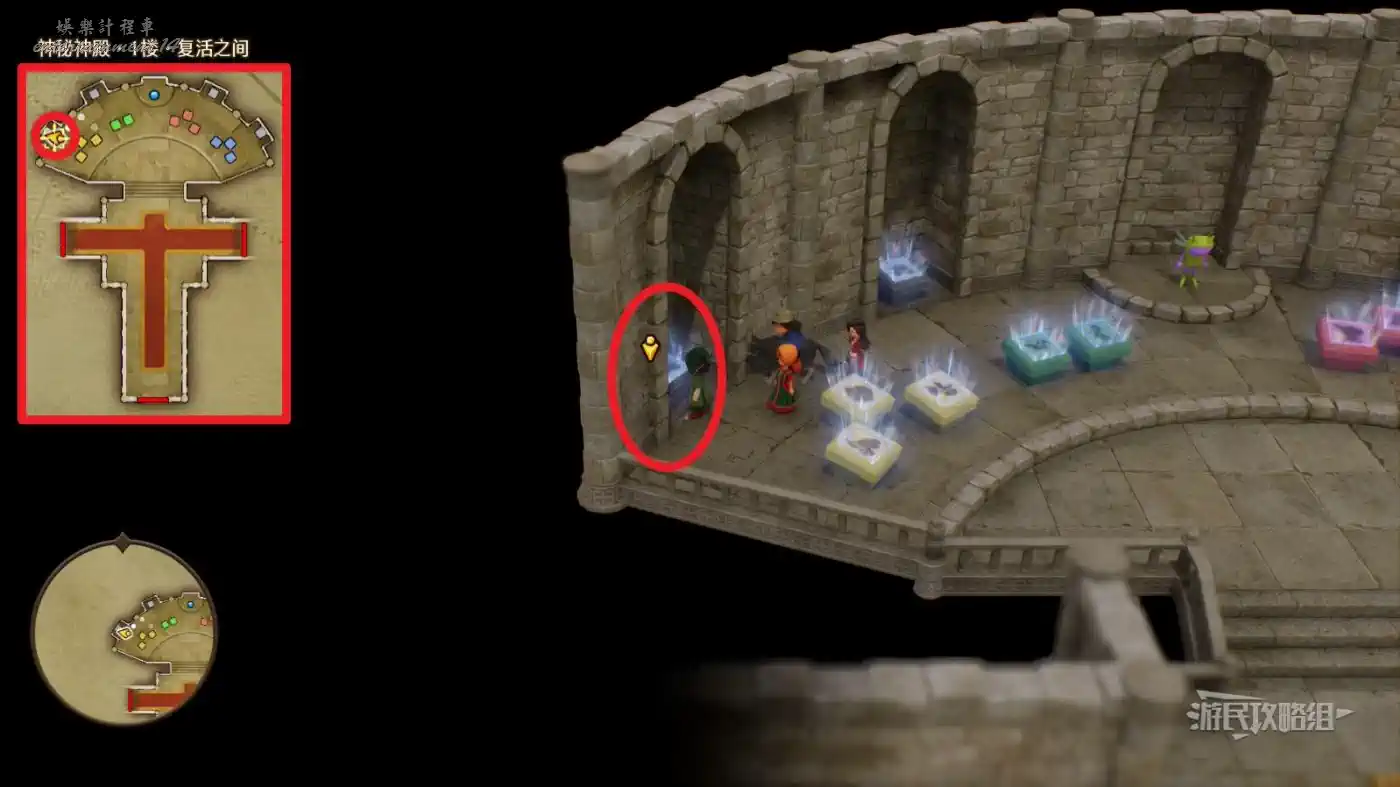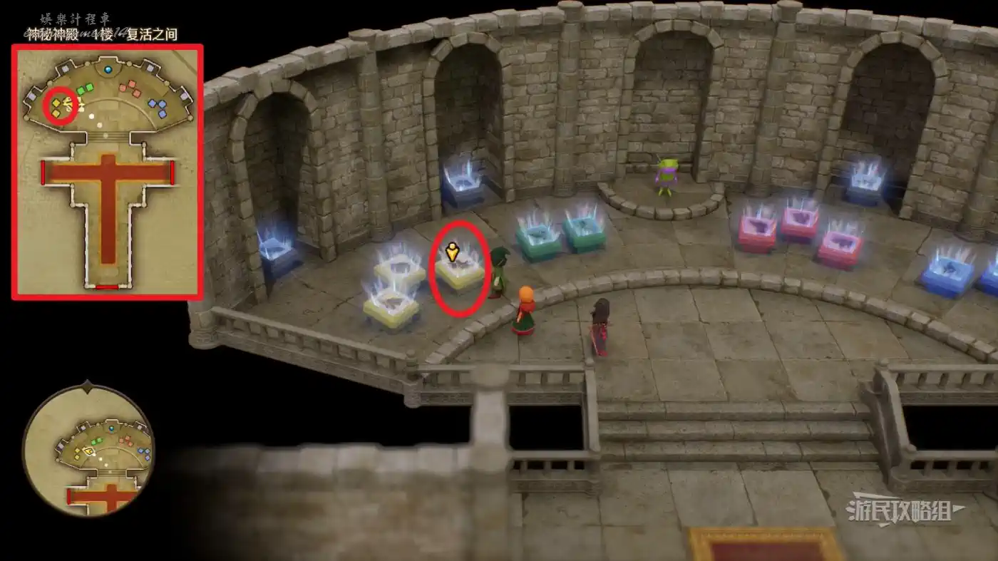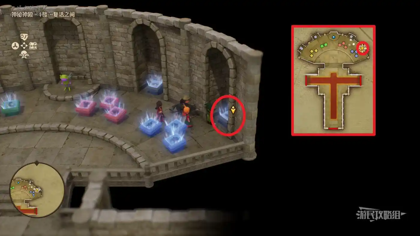 可解鎖【神秘神殿·1樓·復活之間】內最右側凹槽中灰石板底座【過去-盧門周圍】區域。
