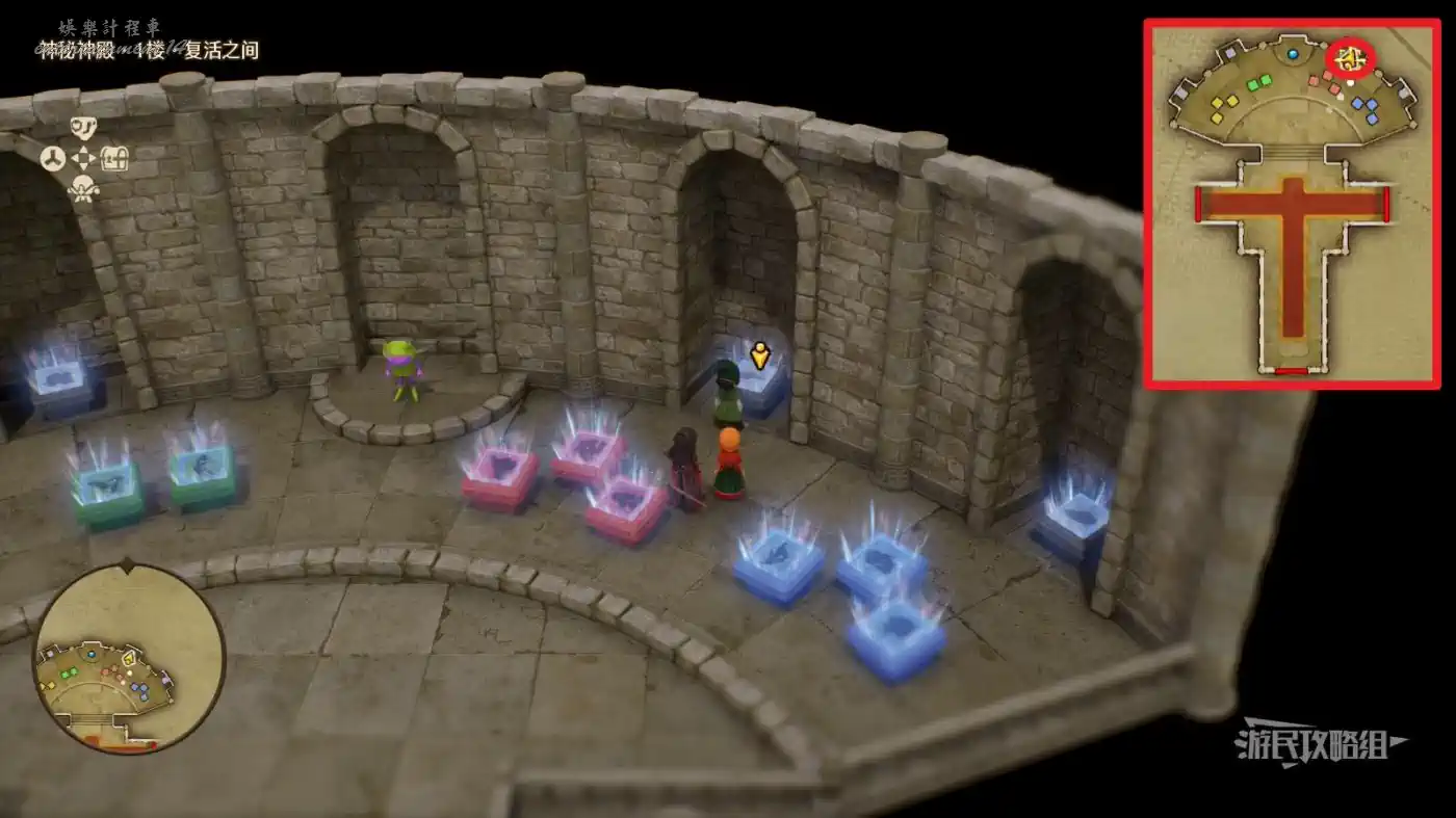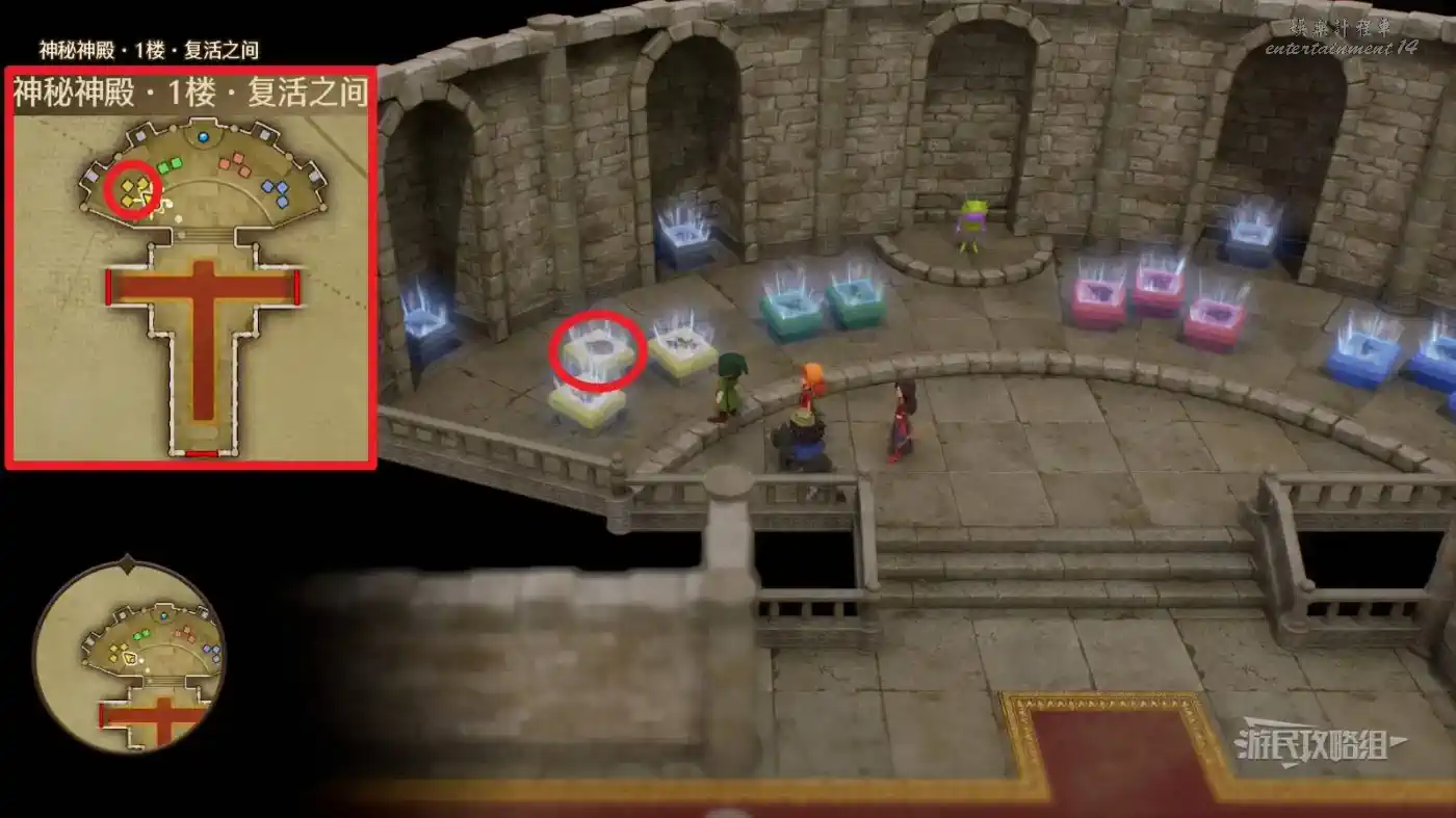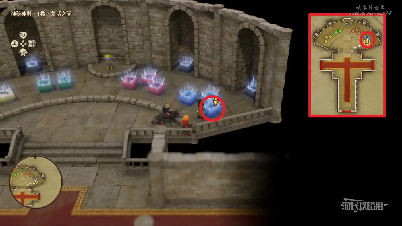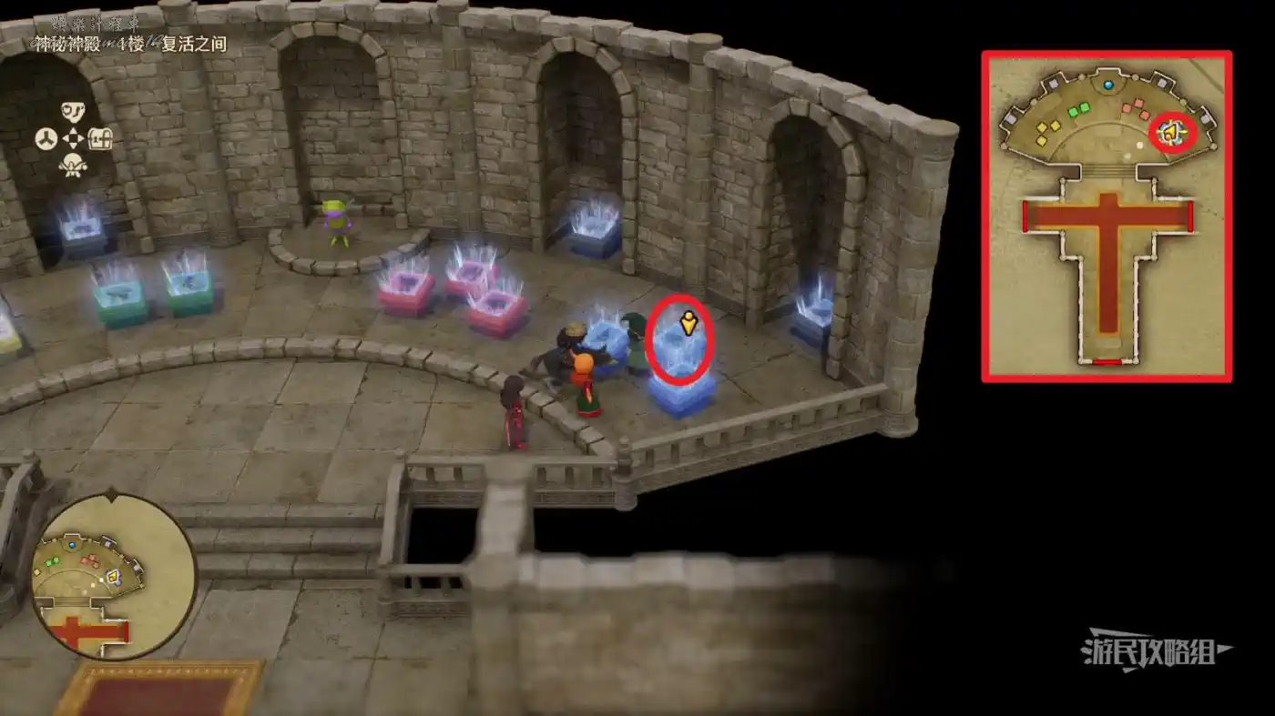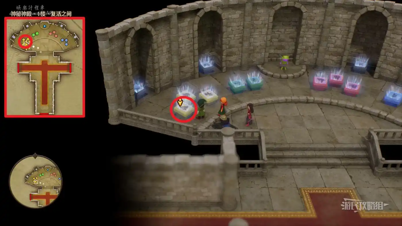 可解鎖【神秘神殿·1樓·復活之間】內最右側凹槽中灰石板底座【過去-盧門周圍】區域。