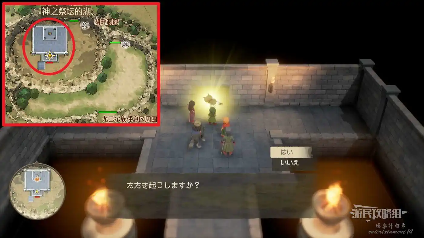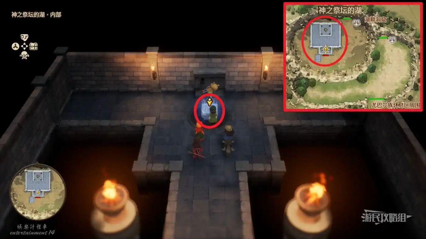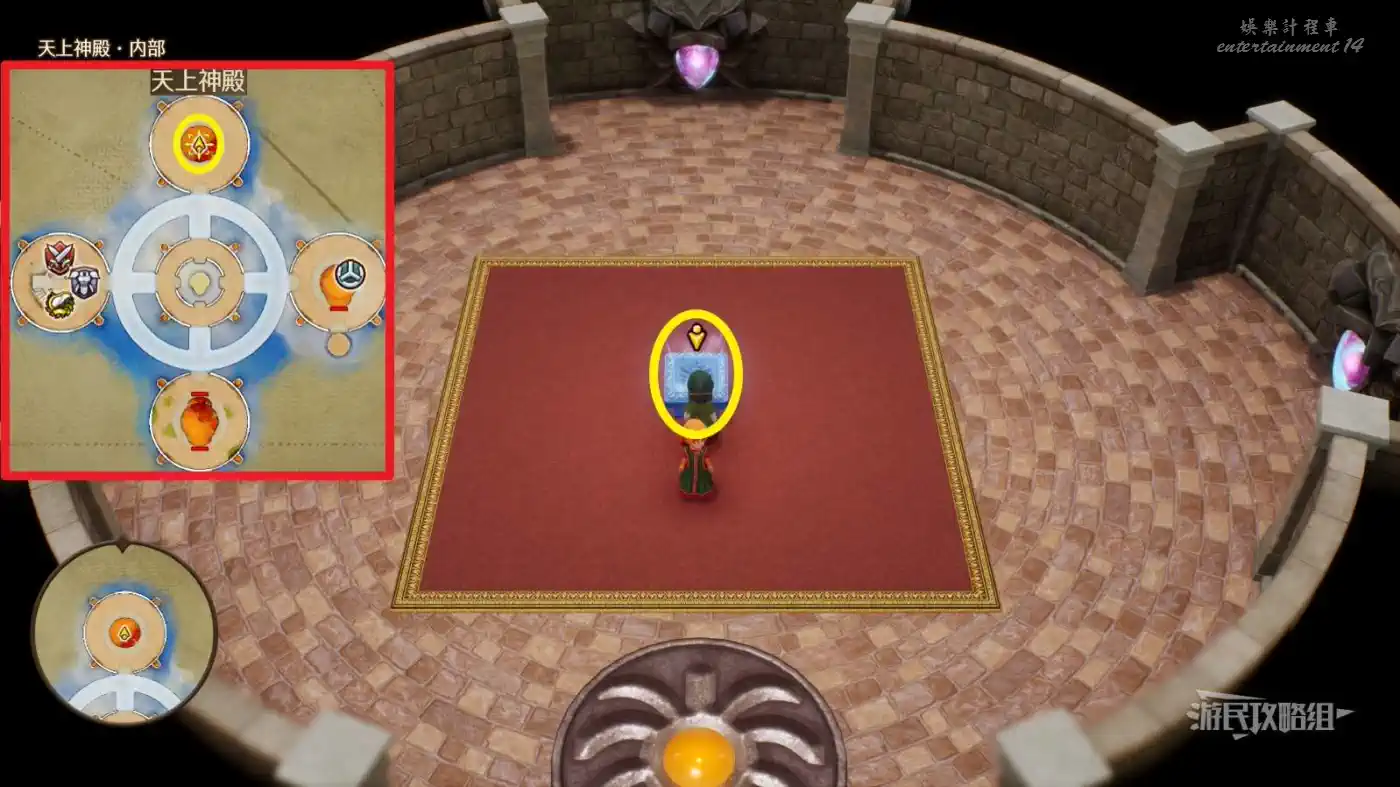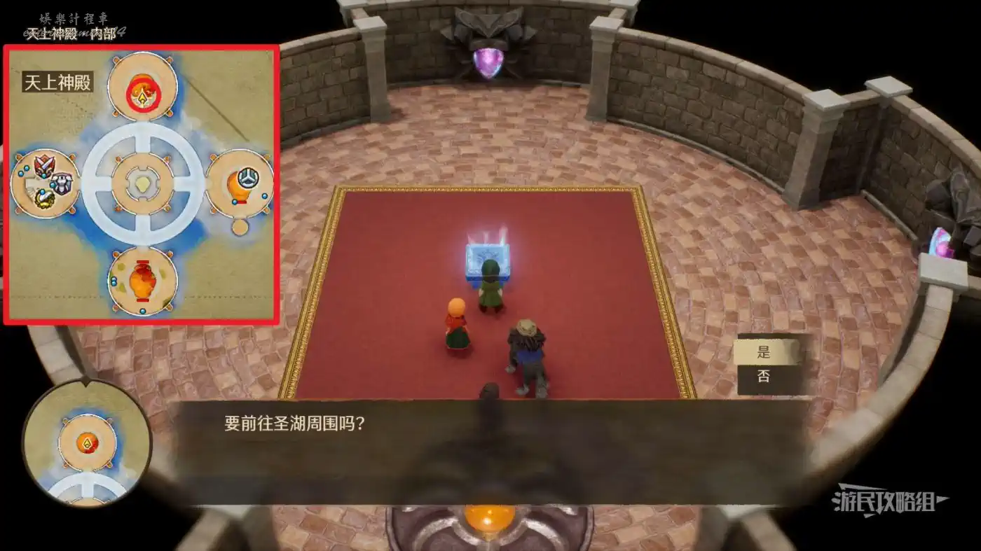 傳送到珊瑚洞窟周圍【天上神殿】,從地圖北邊的圓盤進入神殿內部,與內部的石板底座互動回到【過去】聖湖周圍。