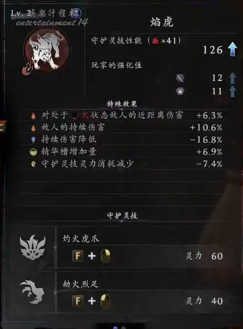 特性:渾身燃火的猛虎,戰意極強;解鎖橫向蹬牆跑靈脈,火屬性高傷技能。