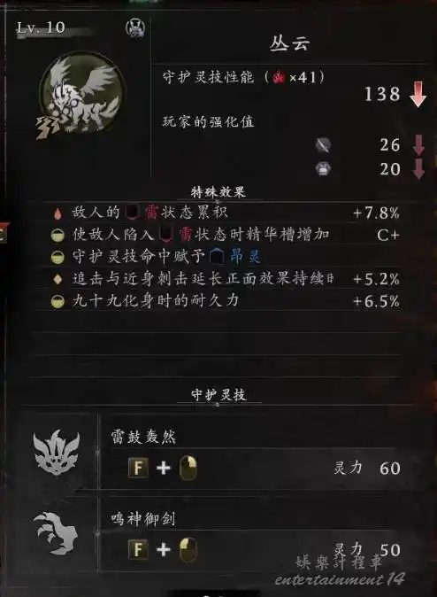 特性:雷神建禦雷神的聖獸,象徵生命力,小幅提升受傷恢復速度;雷屬性技能。