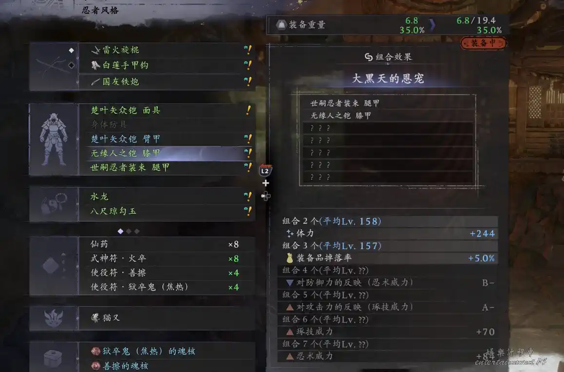 大黑天的恩寵三件套可以提升5%的裝備掉落率。